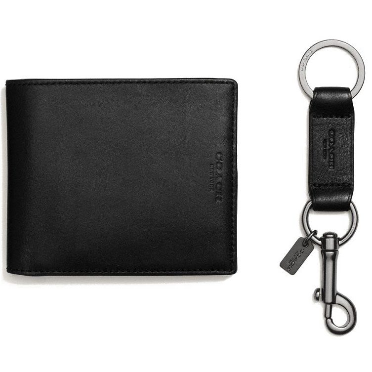 Coach Men Men Wallet In Gift Box Compact Id Wallet In Sport Calf Leather Black # F64118