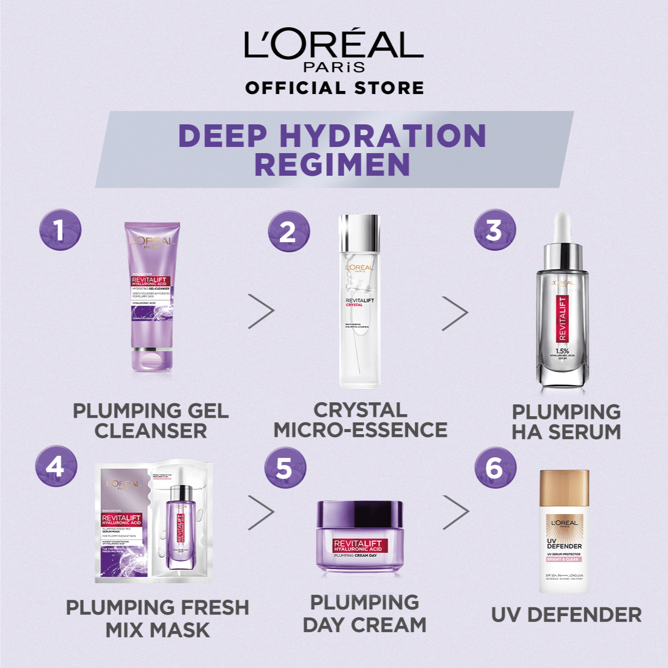 [Bundle of 2] L'Oreal Paris Revitalift 1.5% Hyaluronic Acid Plumping & Hydrating Serum 30ml & Crystal Micro-Essence Water 130ml (Oil Control)