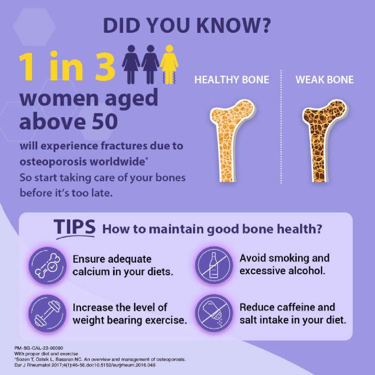 Caltrate Bone & Muscle Health Plus Triple Action Calcium + Vitamin D + Minerals Supplement Tablet (For Strong Bones & Muscles) 100s Recent scientific studies indicate that daily intake of Vitamin D helps maintain healthy bones and muscles. Vitamin D plays an important role in supporting muscle strength hence supporting muscle balance, which are important for prevention of falls which may lead to subsequent fractures. Vitamin D also helps in optimal Calcium absorption to maintain strong bone health. Based on clinical studies, the Vitamin D contained in Caltrate can support muscle strength, helping to reduce overall fracture risk in both men and women. MAHS2000216 **Where applicable, items have a minimum of nine-month shelf life before expiry unless otherwise stated on product description.