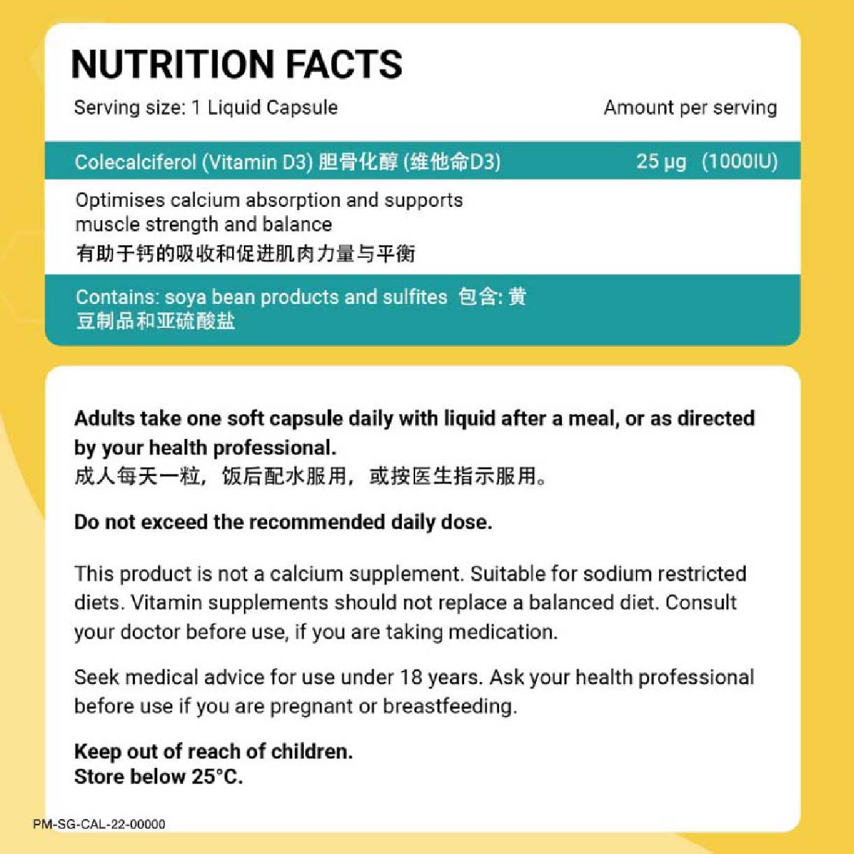 Caltrate® Vitamin D 1000IU is a once daily Vitamin D supplement. Each capsule provides 1000IU of Vitamin D3 in a convenient, easy to swallow liquid capsule. It is essential to support healthy bones and Calcium absorption and is from a trusted Calcium brand, Caltrate®.