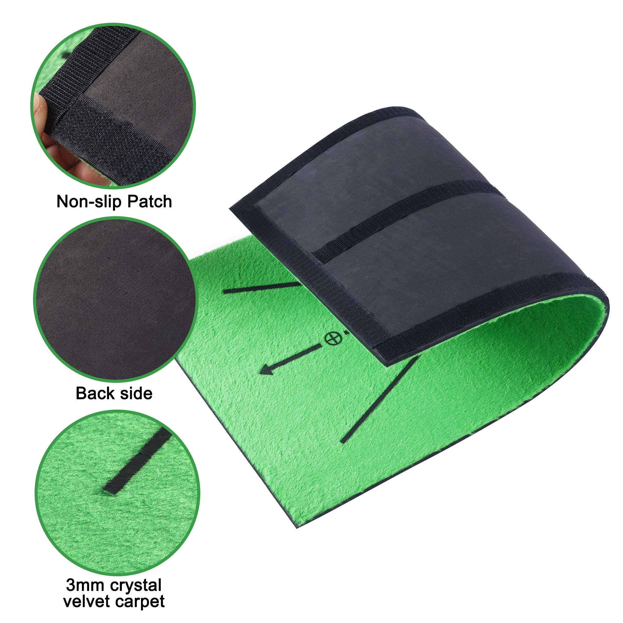 * SMART BALL RETURN SYSTEM — Golf putting mat, the ball rolls back and you don't have to waste time in getting the ball back repeatedly, so that you can focus all your energy on playing!