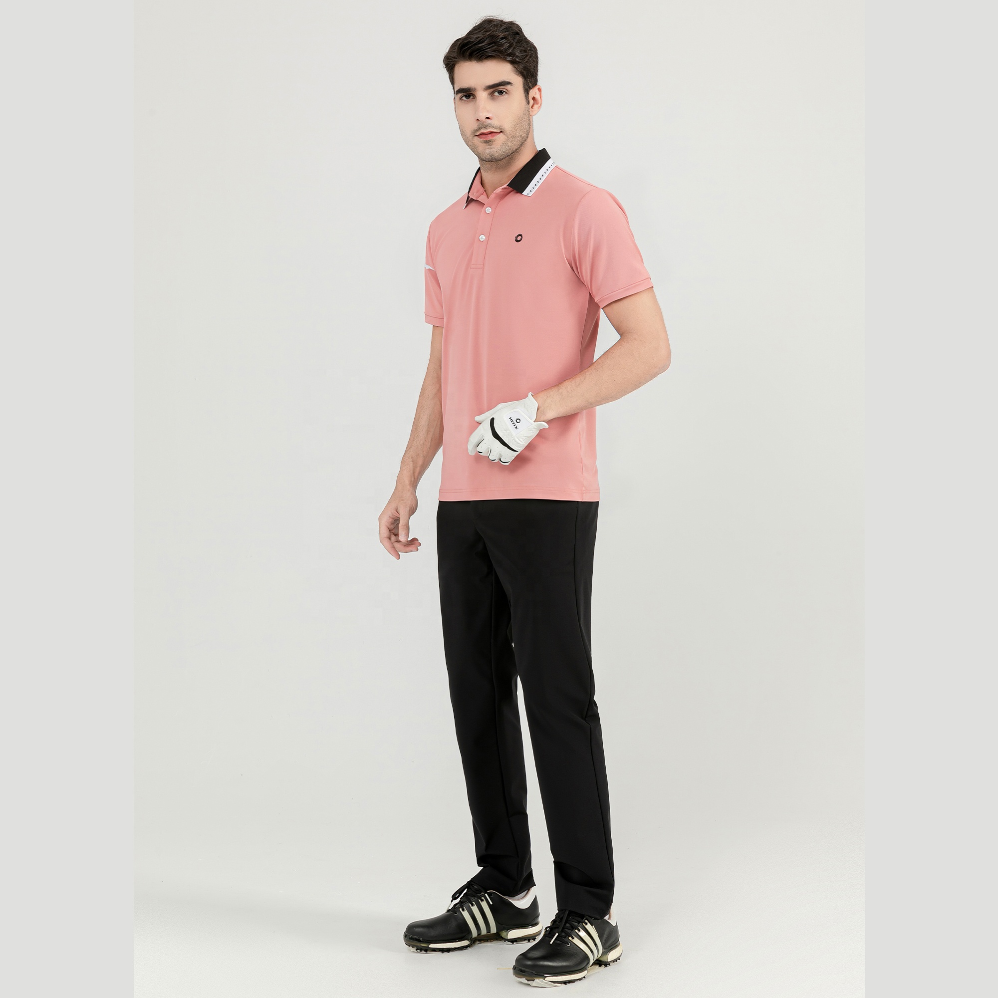 Helix Men's Polo Shirt Quick Dry Performance Short Sleeve Golf Polo Shirt Grayish Blue/pink