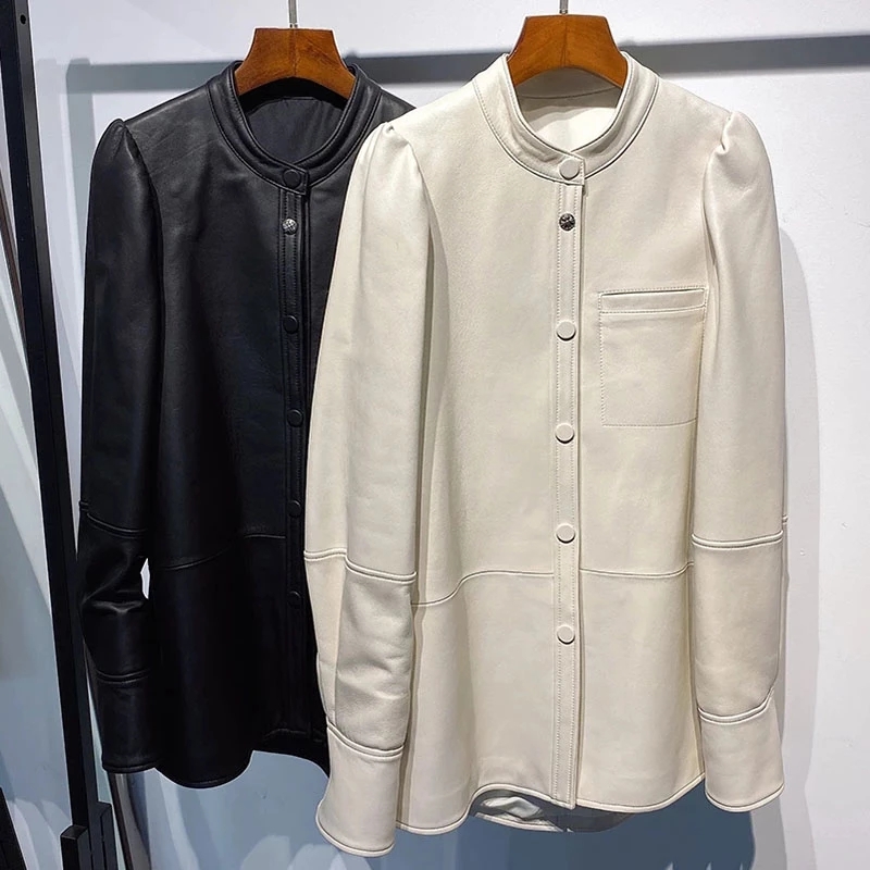 2022 Autumn New Oversized Women Single Breasted Leather Shirt Blouse Real Leather Jacket For Ladies