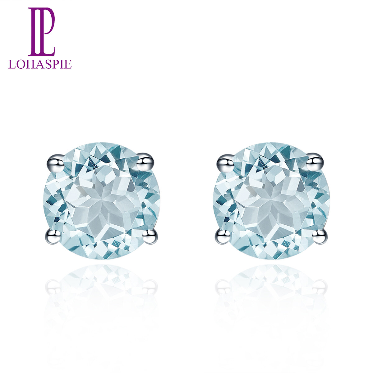 925 Sterling Silver Stud Earrings for Women's Gift Cute Sky Blue Topaz Genuine