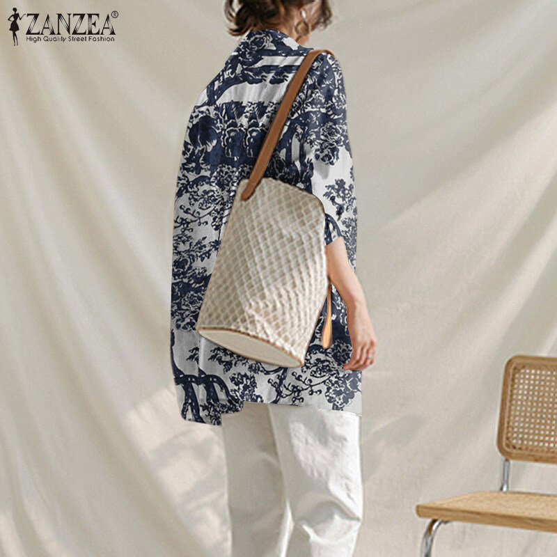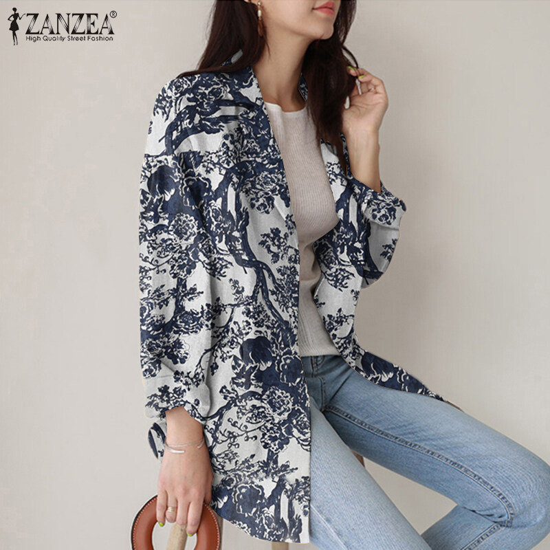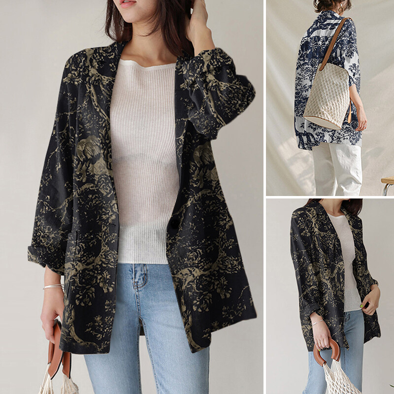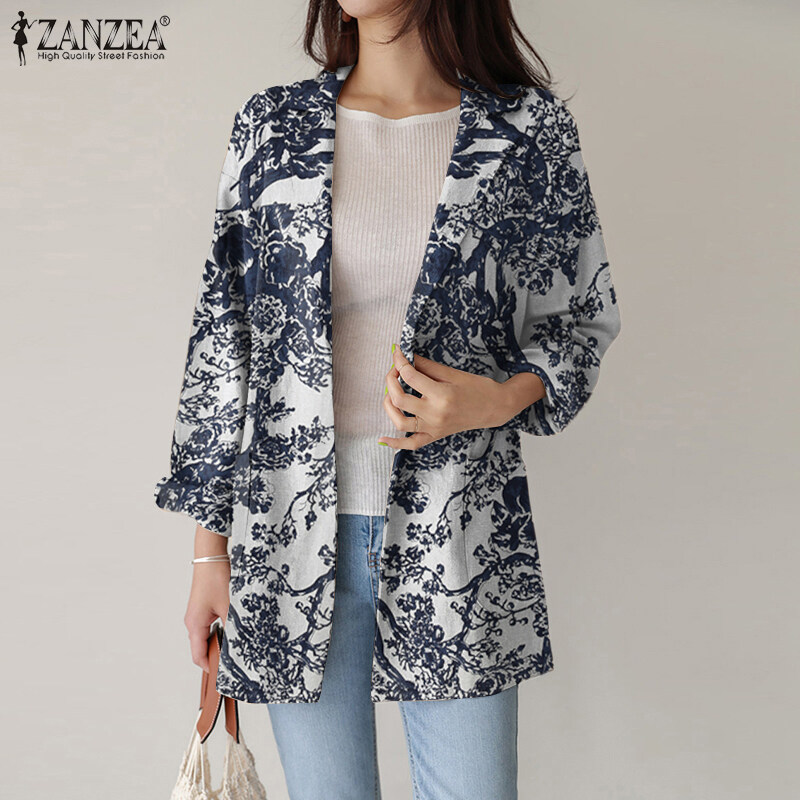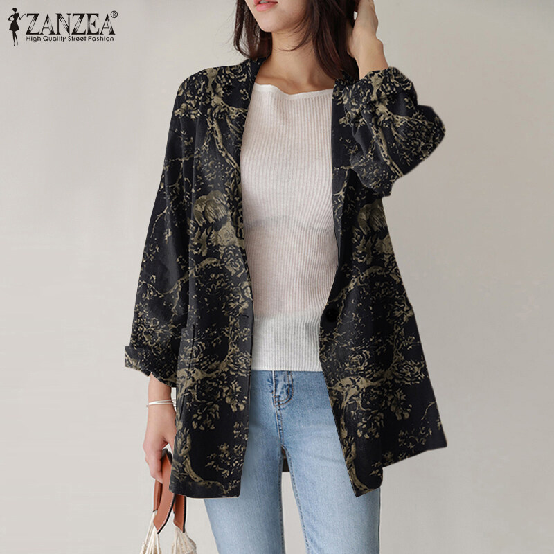 ZANZEA Women Spring Business Long Sleeve Buttons Down Suit Print Loose Coats Blazer