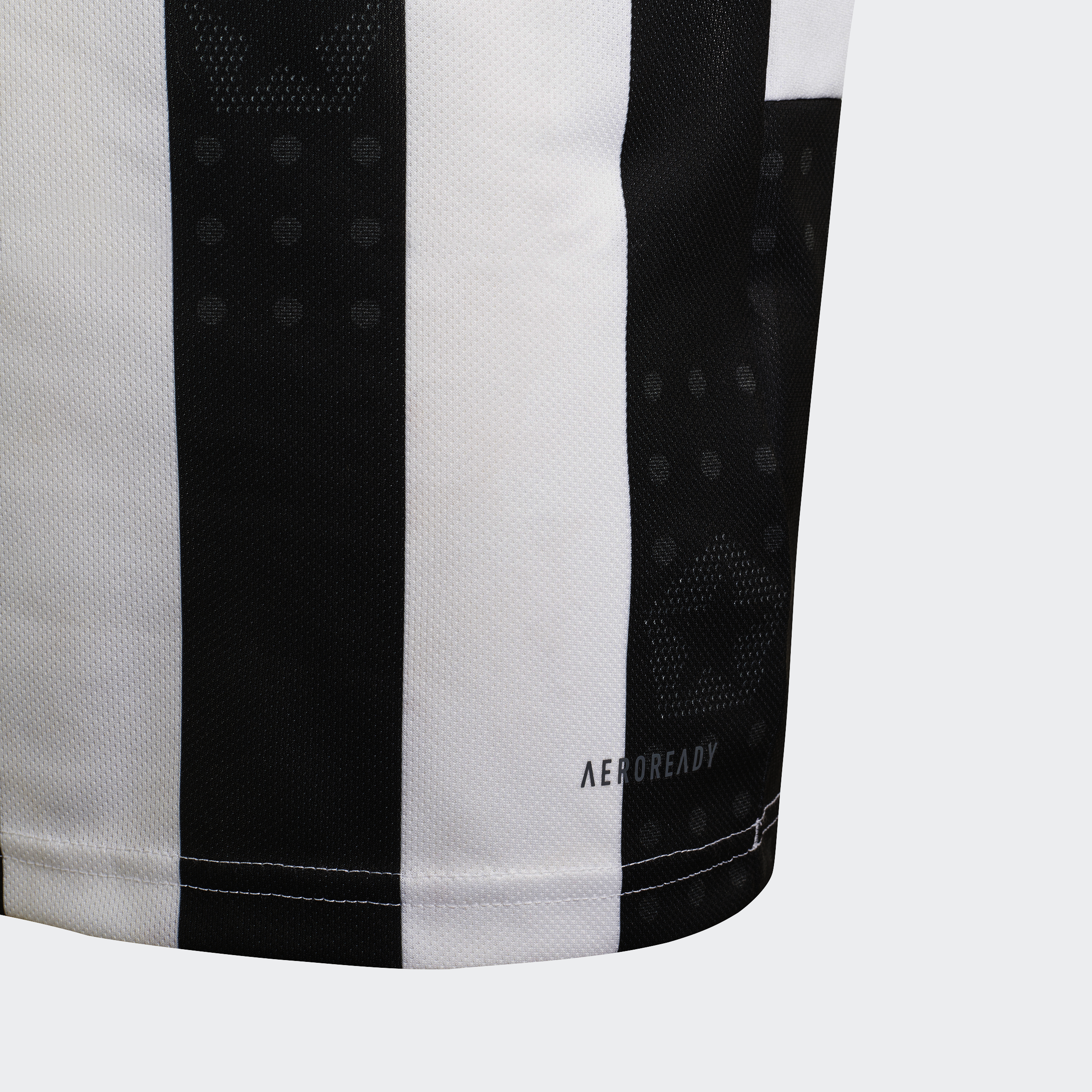 A tribute to their star-studded home. This juniors' adidas Juventus jersey celebrates the tenth anniversary of the club's iconic Allianz Stadium. The stars that dominate the building's design are fired onto its famous black stripes to add some extra style to a classic look. Soft fabric and moisture-wicking AEROREADY combine to keep fans comfortable. This product is made with Primegreen, a series of high-performance recycled materials.