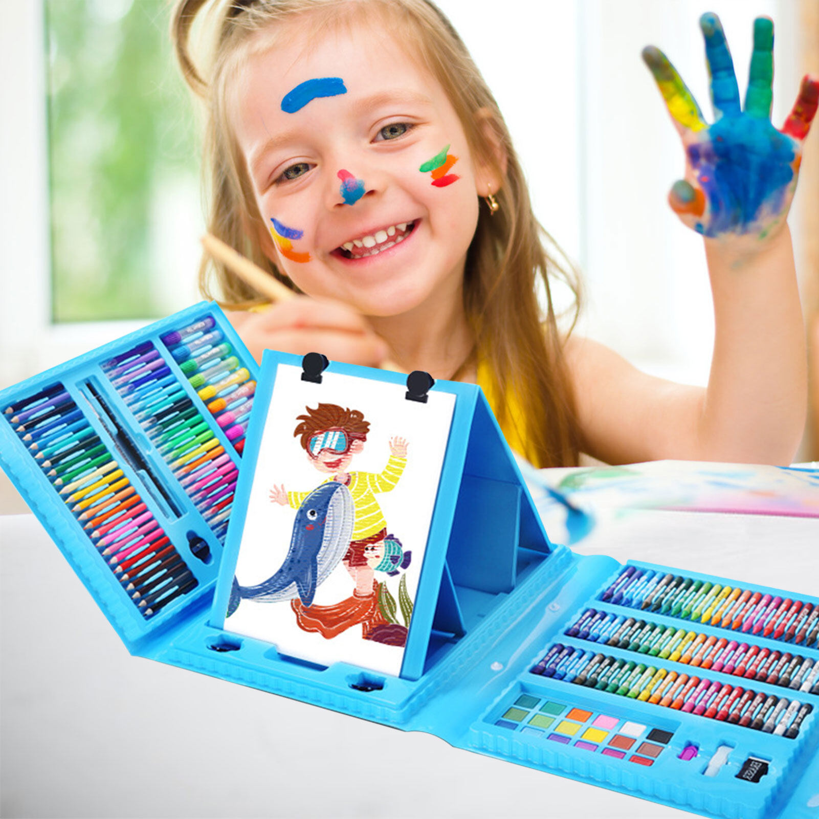 208 PCS Kids Painting Coloring Set Draw Set Colored Pencil Crayon Watercolor Pens With Drawing Board Drawing Set Toy School Supplies Kid Gifts