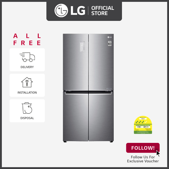 [[Bulky] LG GF-B4539PZ French Door fridge, 464L, Platinum Silver + Free Delivery + Free Installation + Free Disposal + Free $100 Grocery Voucher
