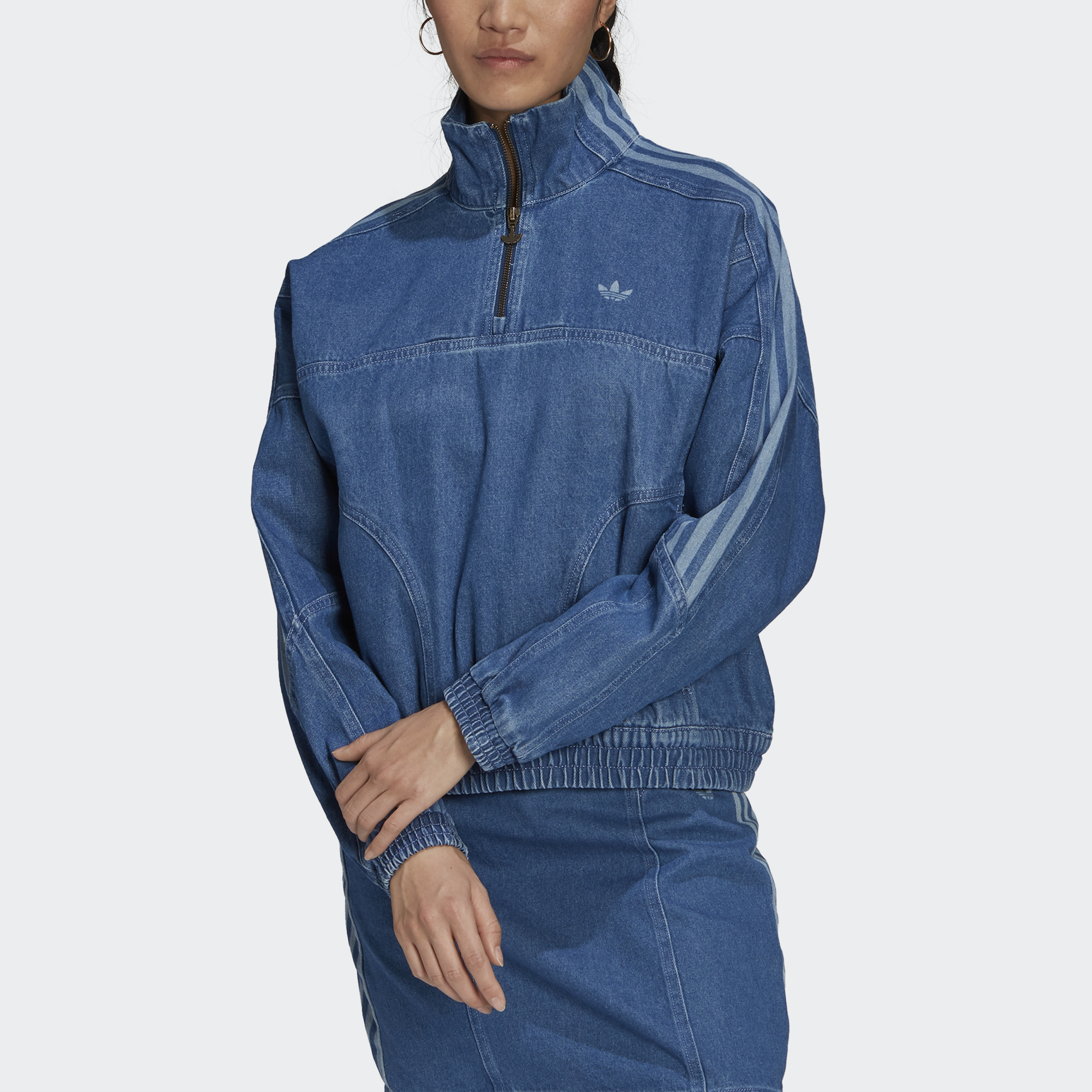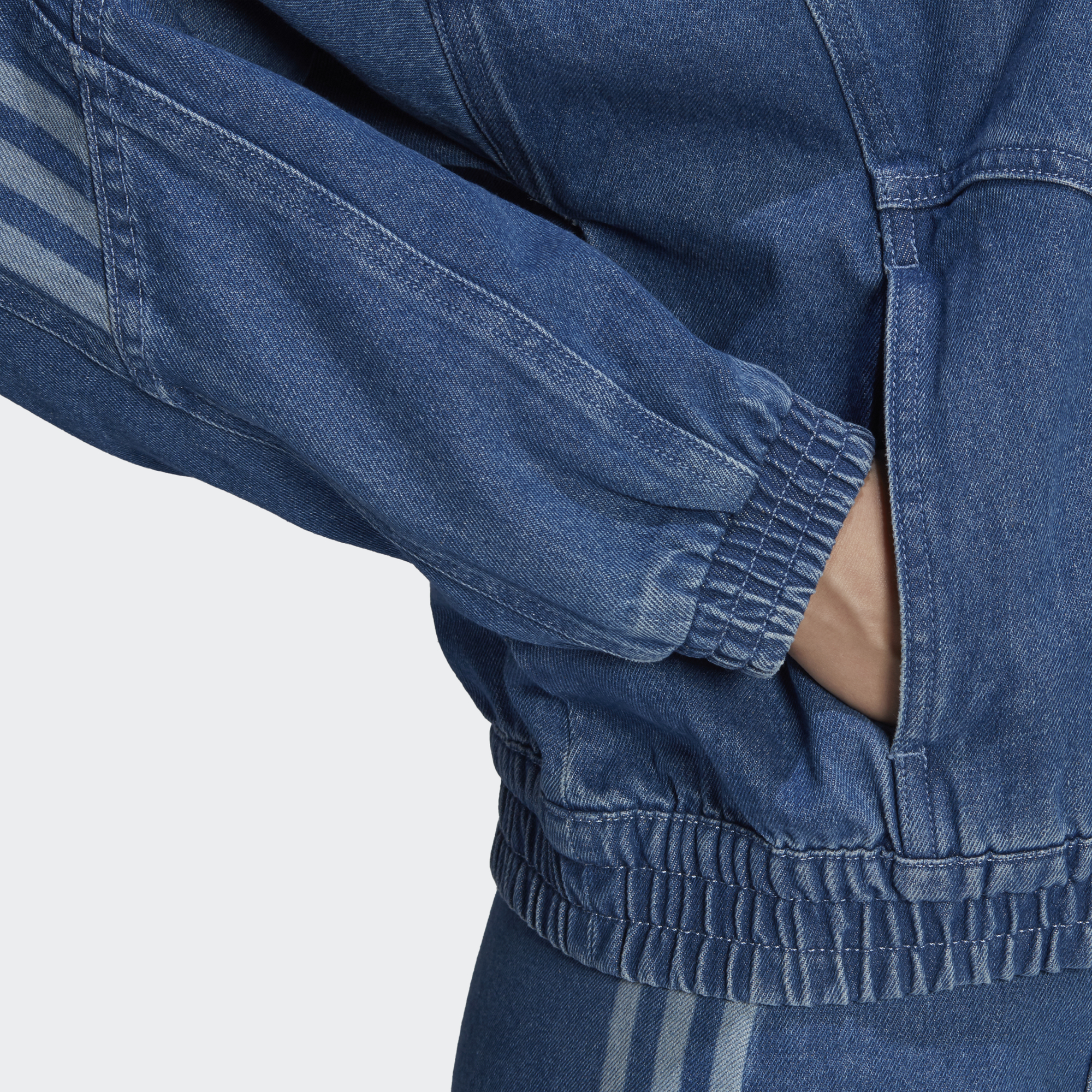 Let's play a word game. What comes to mind when we say 3-Stripes? Swagger, sport, style. What about denim? Cool, casual, vintage. There you have it. Rock casual swagger every time you pull on this adidas track top. Add a matching bottom to go full denim or open your closet doors and play. By buying cotton products from us, you're supporting more sustainable cotton farming.