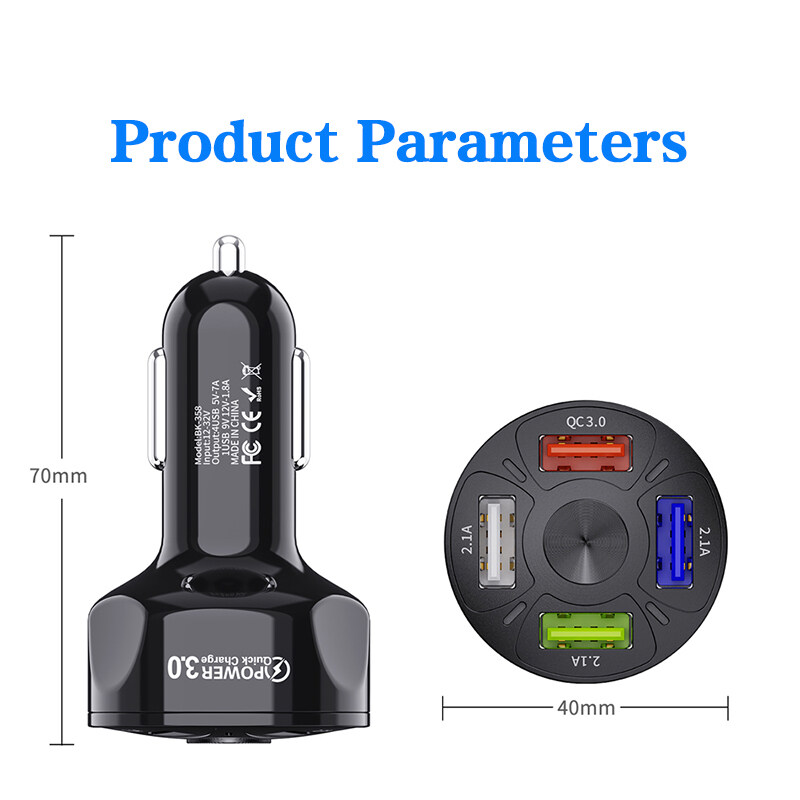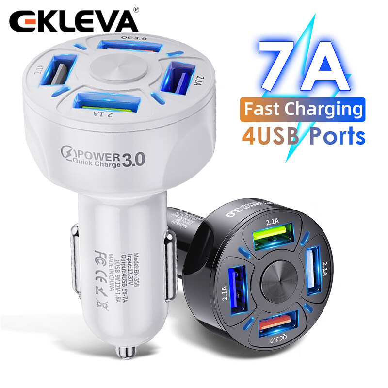 EKLEVA 4USB Car Charger QC3.0 Fast Charging Car Charger with Four Ports Multi-function Smart Car Mobile Phone Charger 35W/7A