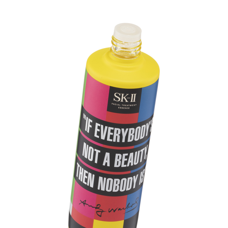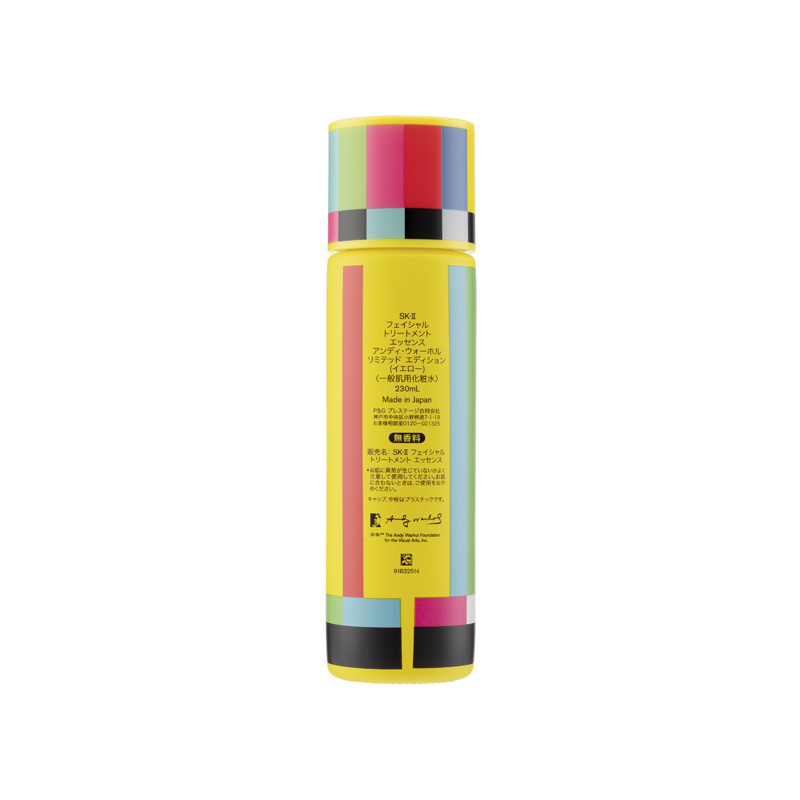 SK-II Pitera™ Essence Andy Warhol Limited Edition (#Yellow) (230ml) Crossover with the famous artist Andy Warhol, this limited edition of the signature essence water is in chic and unique packaging. Formulated with the signature Pitera™, skin would appear to be dewy, translucent and revitalized.Product Features:•Skin revitalizing: this essence water is rich in Pitera™ to maintain skin generation cycle, leaving skin balanced and resilient. It also helps to remove old dull skin cells for a silky and dewy texture.•Anti-aging: it replenishes skin with abundant moisture and nutrients, helping to blur wrinkles and fine lines, leaving skin radiant and youthful.•Lightweight texture: its watery texture penetrates skin fast to nourish and revitalize. It also boosts the effects for the subsequent skincare.Ingredients :•Pitera™: boosting skin circulation •Natural Moisturizing Factor: nourishing