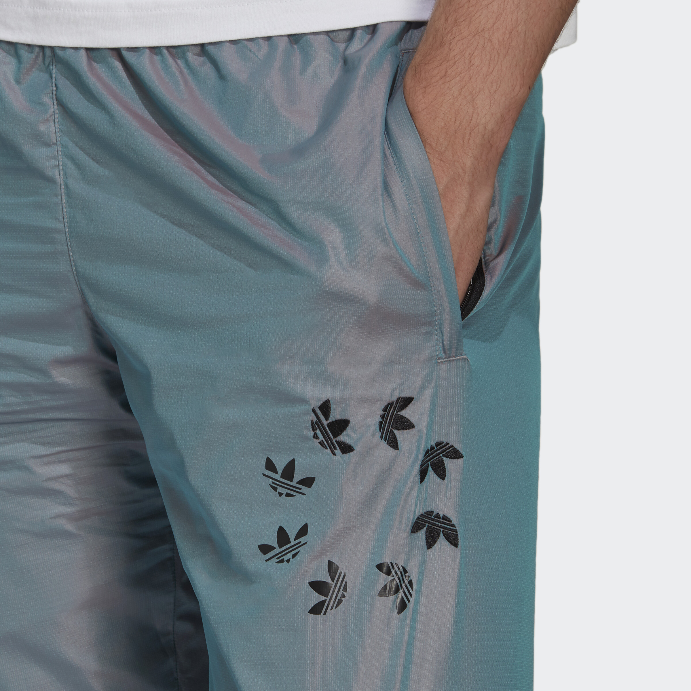 Classic style, but with more flash and swagger. Step into these adidas track pants when you want a casual look with enough edge to spotlight your confidence. Iridescent fabric and a swirl of shattered Trefoils put a modern spin on tradition. This product is made with Primegreen, a series of high-performance recycled materials.