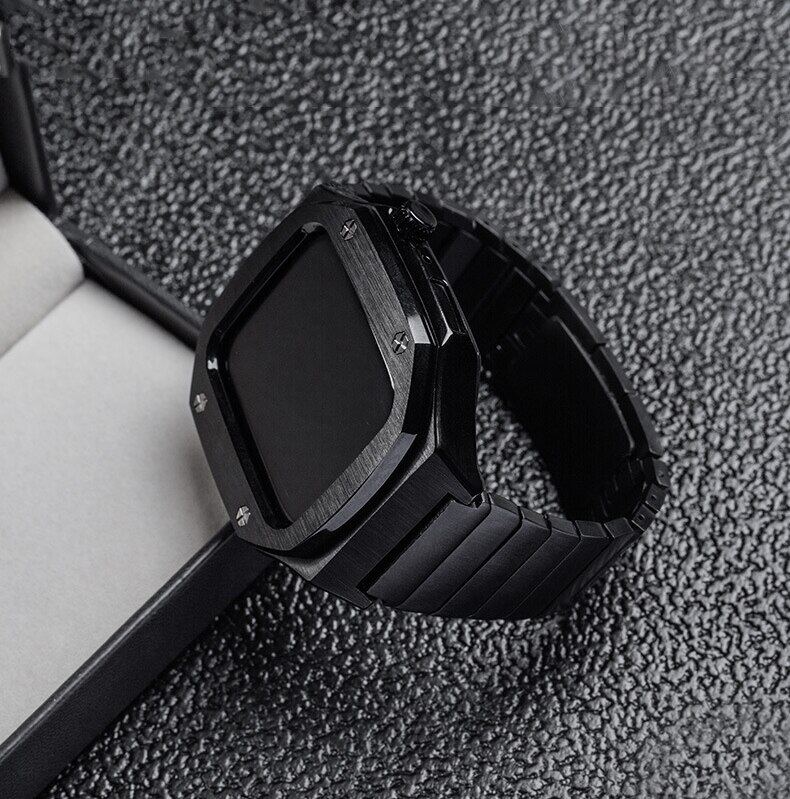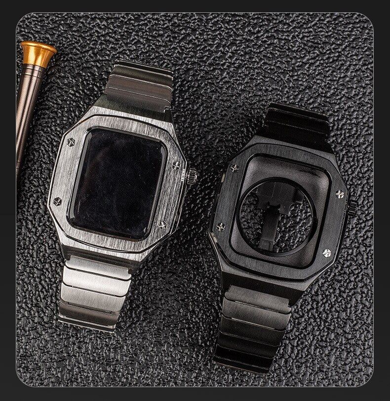 45Mm 44Mm Stainless Steel Metal Case + Strap For Apple Watch 8 7 Leather Band For I watch Series 6 se 5 4 Modification kit