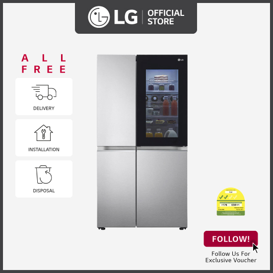 [Bulky] LG GS-Q6472NS side-by-side-fridge with InstaView Door-in-Door™, 647L, New Noble Steel + Free Delivery + Free Installation + Free Disposal + Free Happycall Diamond Solaris I.H.28cm Depp Wok &
