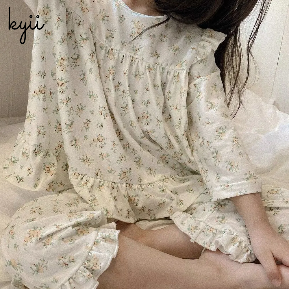 KYII Girls pajamas children long sleeve summer lovely Set ky22063