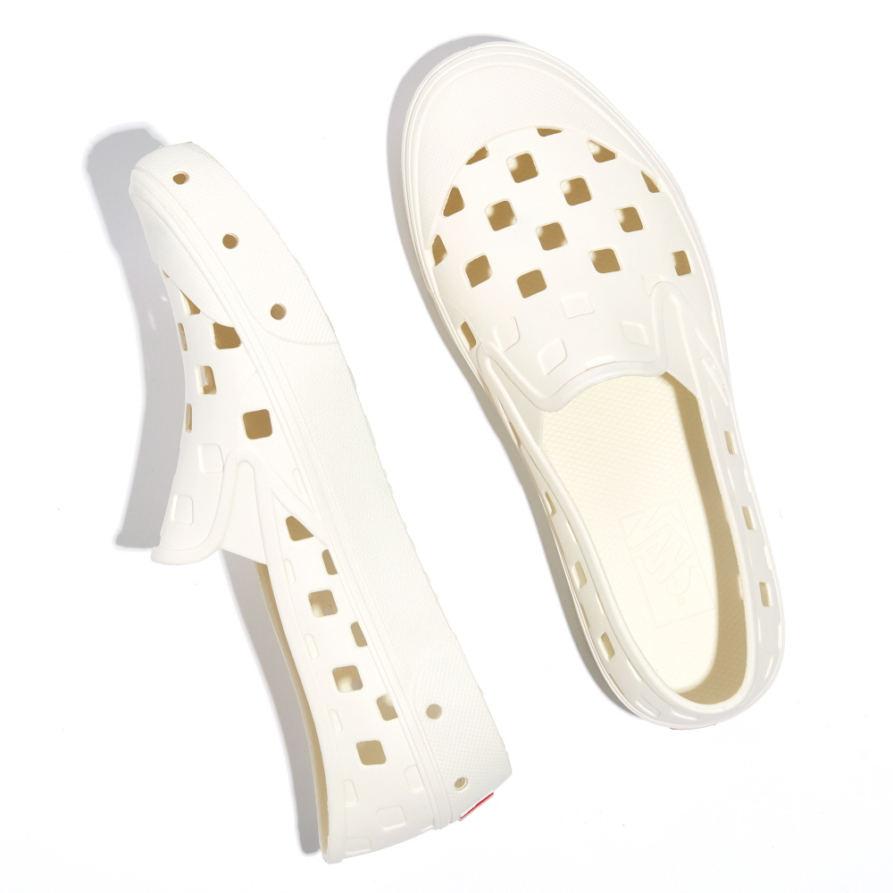 Introducing the first go anywhere, do anything, rinseable Slip-On Sandals arent for everyone, but wearing shoes to the beach isnt always ideal, either-and thats why weve welcomed the Slip-On TRK to the Vans family. Just go surf, rinse, then repeat. Taking the Classic Slip-On silhouette to a whole new level, the Slip-On TRK combines all the Vans DNA that you know and love with a durable, single piece injected construction, deconstructed checkerboard drainage holes for breathability, and an oversized reverse waffle sole for incredible traction in any situation. Designed to be lightweight and fully rinseable, the Slip-On TRK is easy to pack for your next adventure, so you can slip-on and on and on. - BIG-TIME TRACTION - Improved traction for any situation, thanks to the oversized reverse waffle sole. - BREATHABLE AND RINSABLE - Drainage holes mean that whatever goes in goes right back out. - A ONE-PIECE, SOLID, DURABLE DESIGN - A single-piece injected construction makes the Slip-On TRK collapsible and packable, as well as durable.