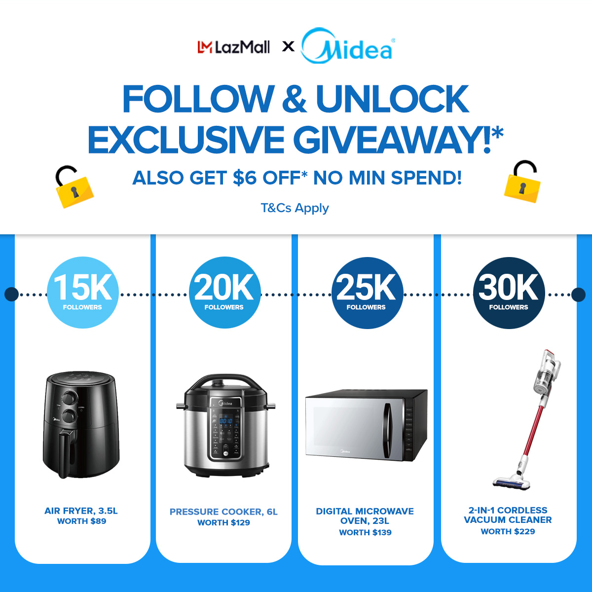 Midea MS1315BW White 12 Inches Smooth Oscillation Table Fan with 3 Speeds Level, 12 Inches
