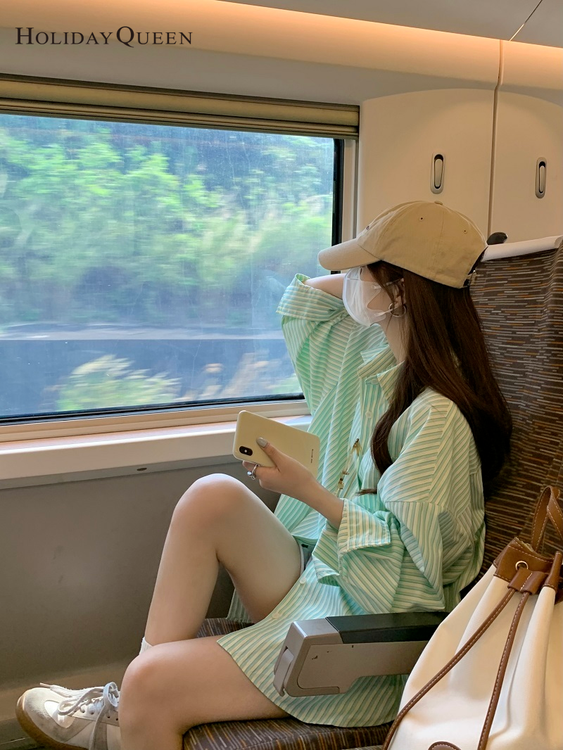HolidayQueen Summer Women's POLO Collar Striped Shirt New Korean Design Mid-Length Thin Sunscreen Shirt Sunscreen Cardigan M L XL Free Shipping HQ1301