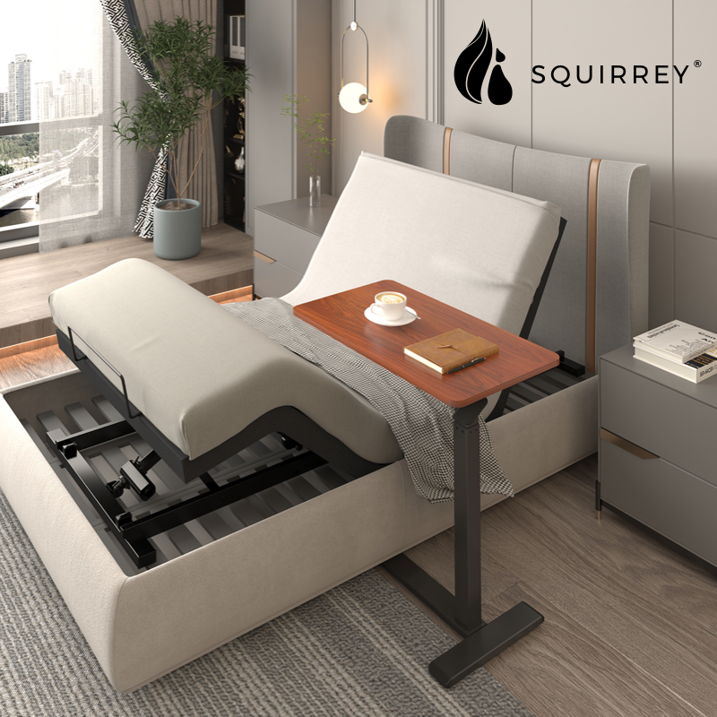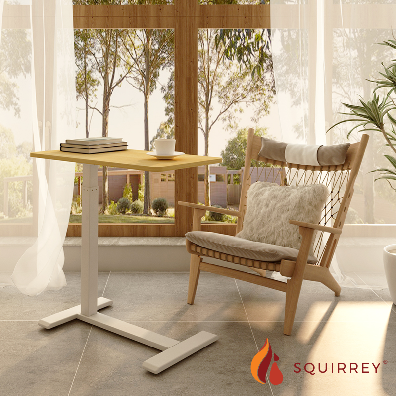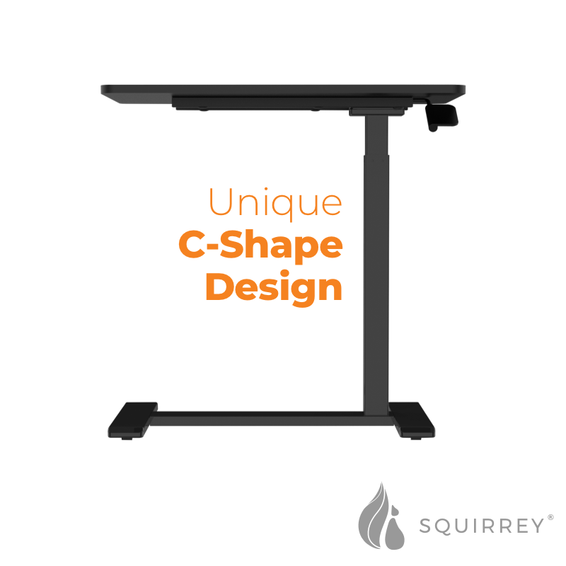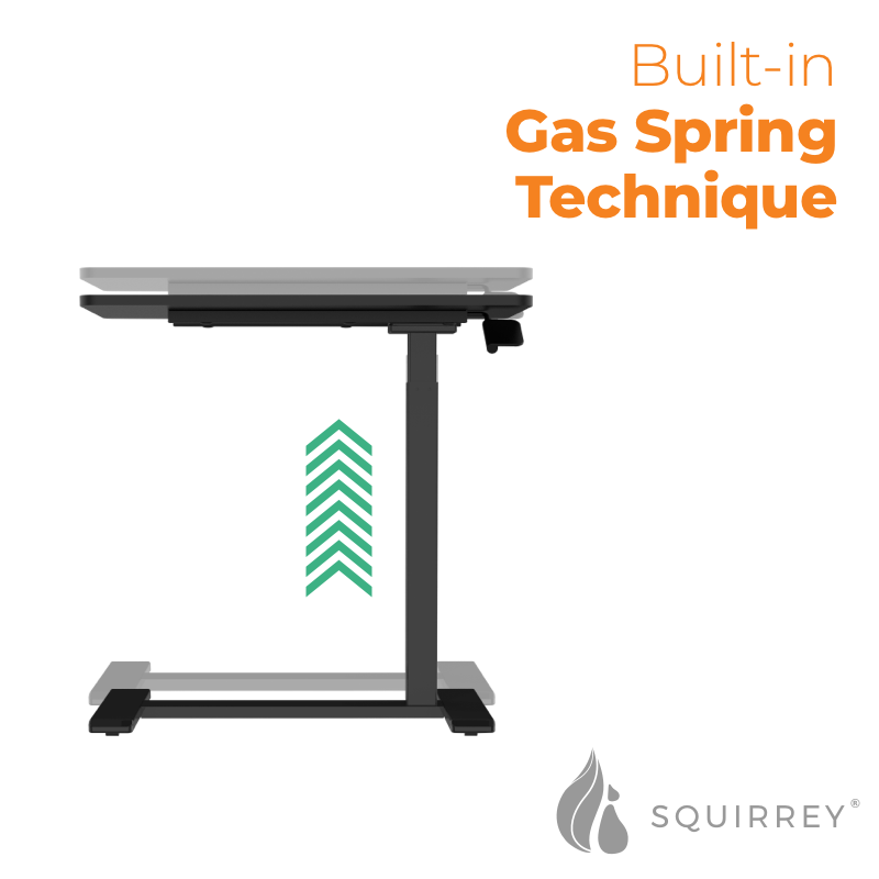 Squirrey Height Adjustable Mobile Desk [ 700x400mm Tabletop, 650-1030mm Height Adjustment, Over-bed Table, Side Desk, C-Shaped, 7kg Load Capacity, Pneumatic Gas Spring, Hidden Casters, Ergonomic, Spac