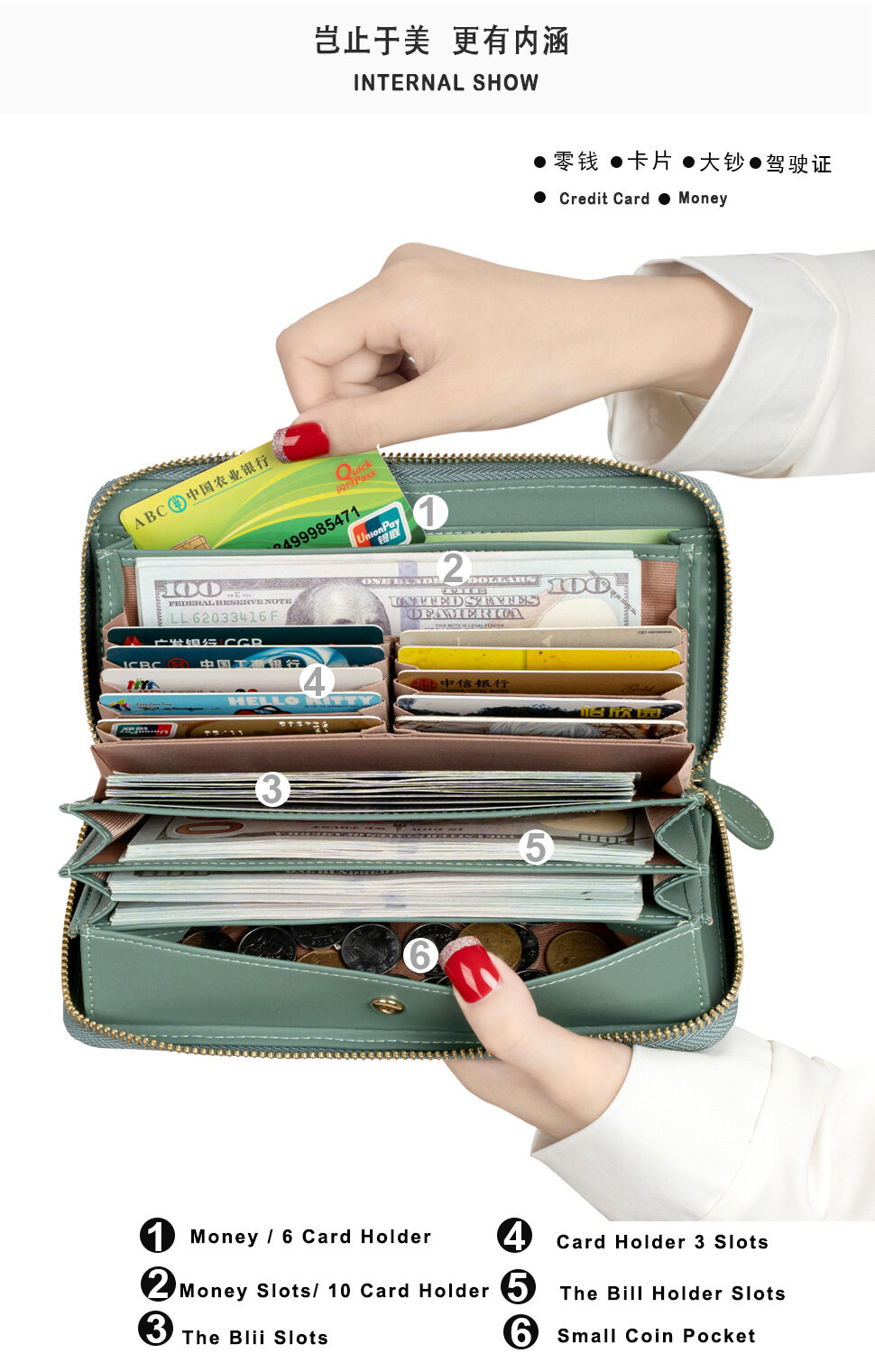 Royal Bagger New RFID Zipper Long Wallets for Women Genuine Cow Leather Large Capasity Ladies Clutch Bag Multifunction Casual Girl Card Holders Coin Purse Phone Bag