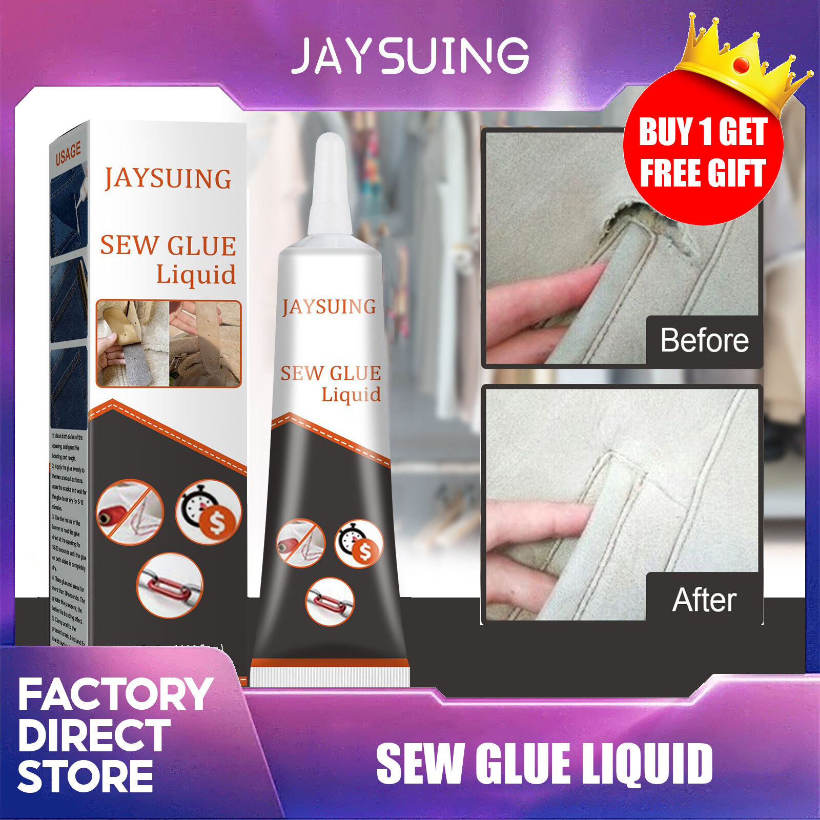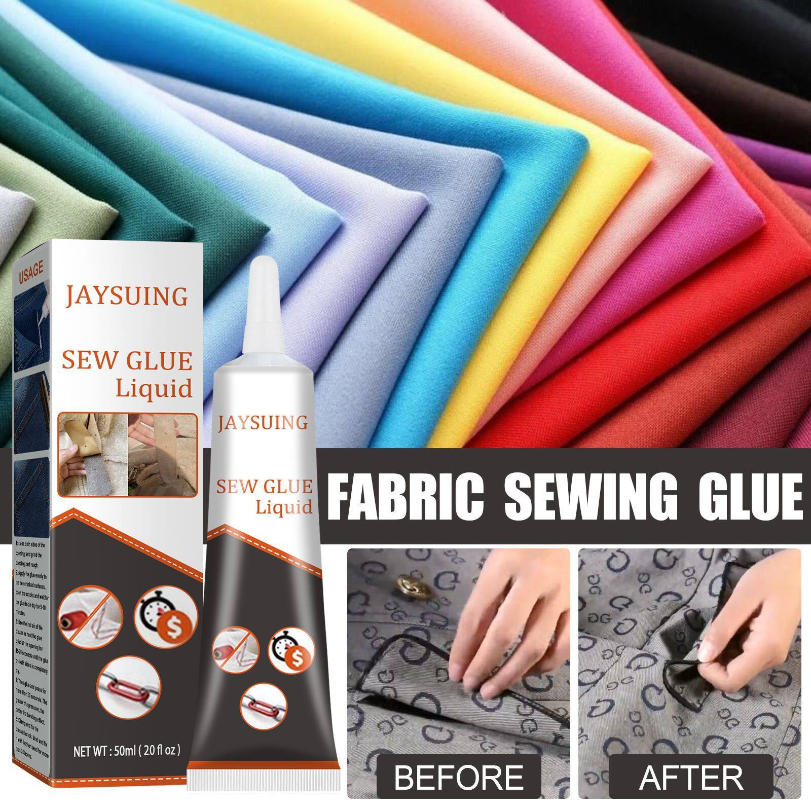 【BUY 1 GET FREE GIFT】Jaysuing Sew Glue Liquid Sew Glue Clothes Fabric Leather Sew Glue Kit Secure Fast Drying Glue Liquid Sewing Ultra-stick Adhesives Waterproof 50ML