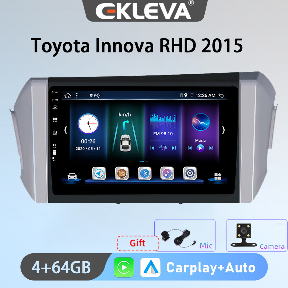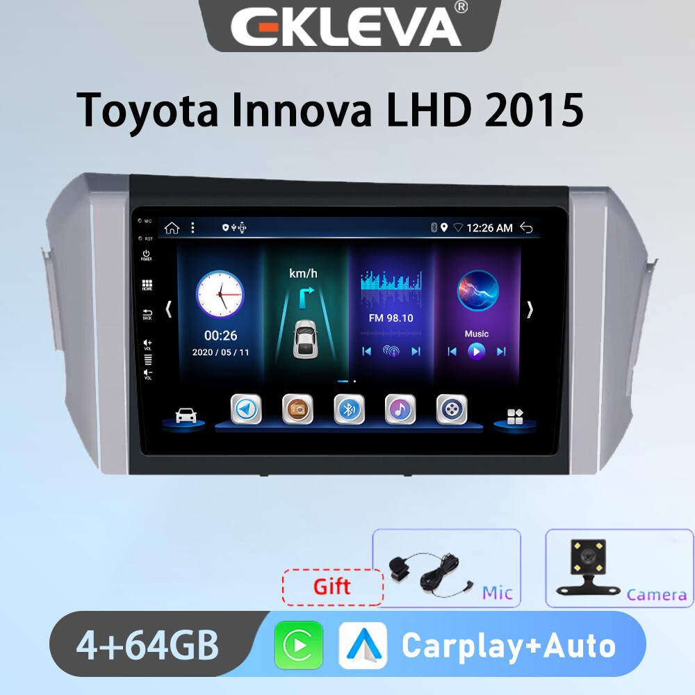 EKLEVA 9 Inch Car Radio Android 12 For Toyota Innova LHD/RHD 2015 Carplay Auto Aux Wifi DAB OBD USB Car Multimedia Video Player Head Unit 2din GPS 4G Free Gift Rear Camera and Microphone