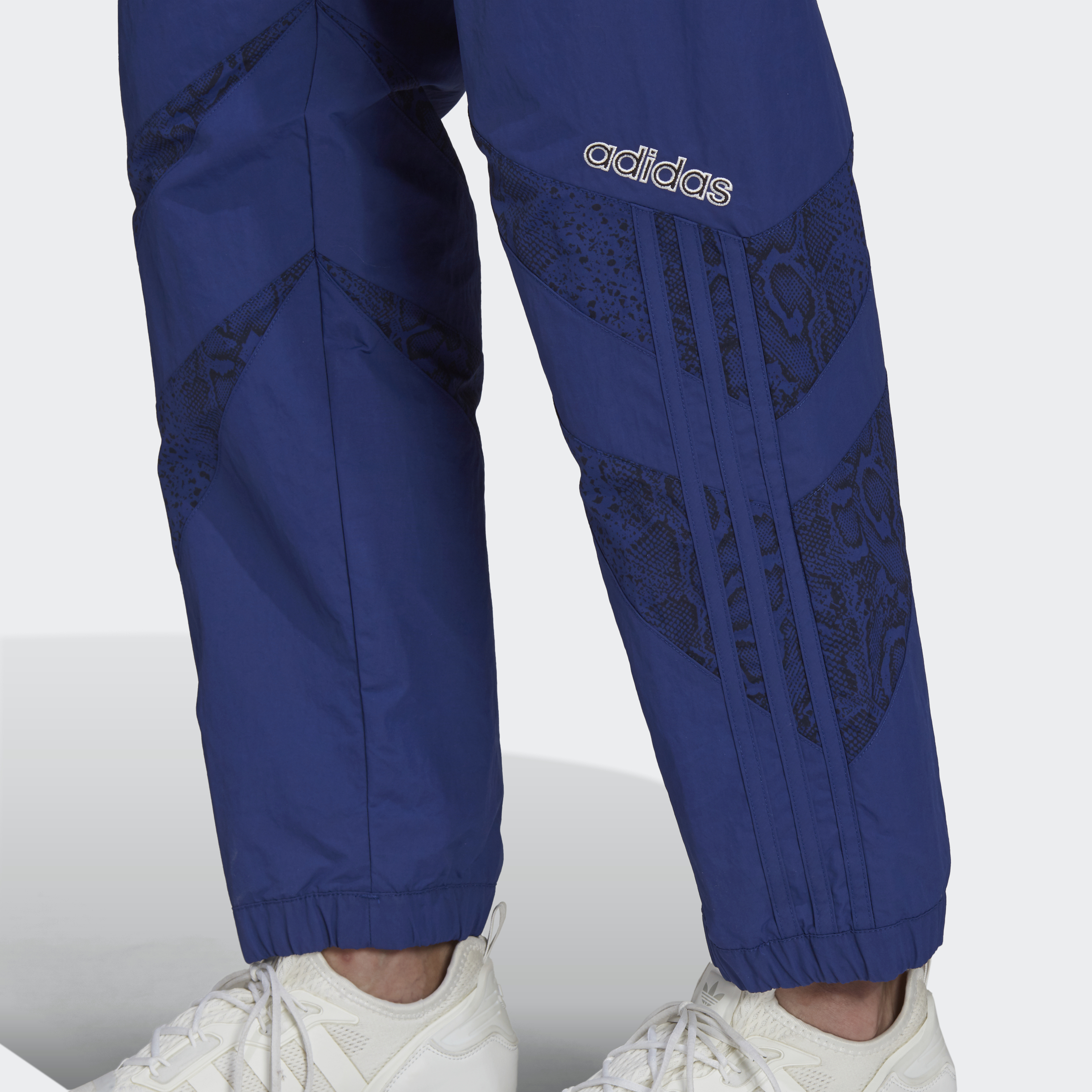 Why do anything halfway? Exactly. There's no good answer. Go big on style and comfort in these adidas track pants. The lightweight nylon build has a relaxed drape and a cuffed hem so you can move through the day with ease. Sharp slashes of snakeskin print on the legs are all about attitude.