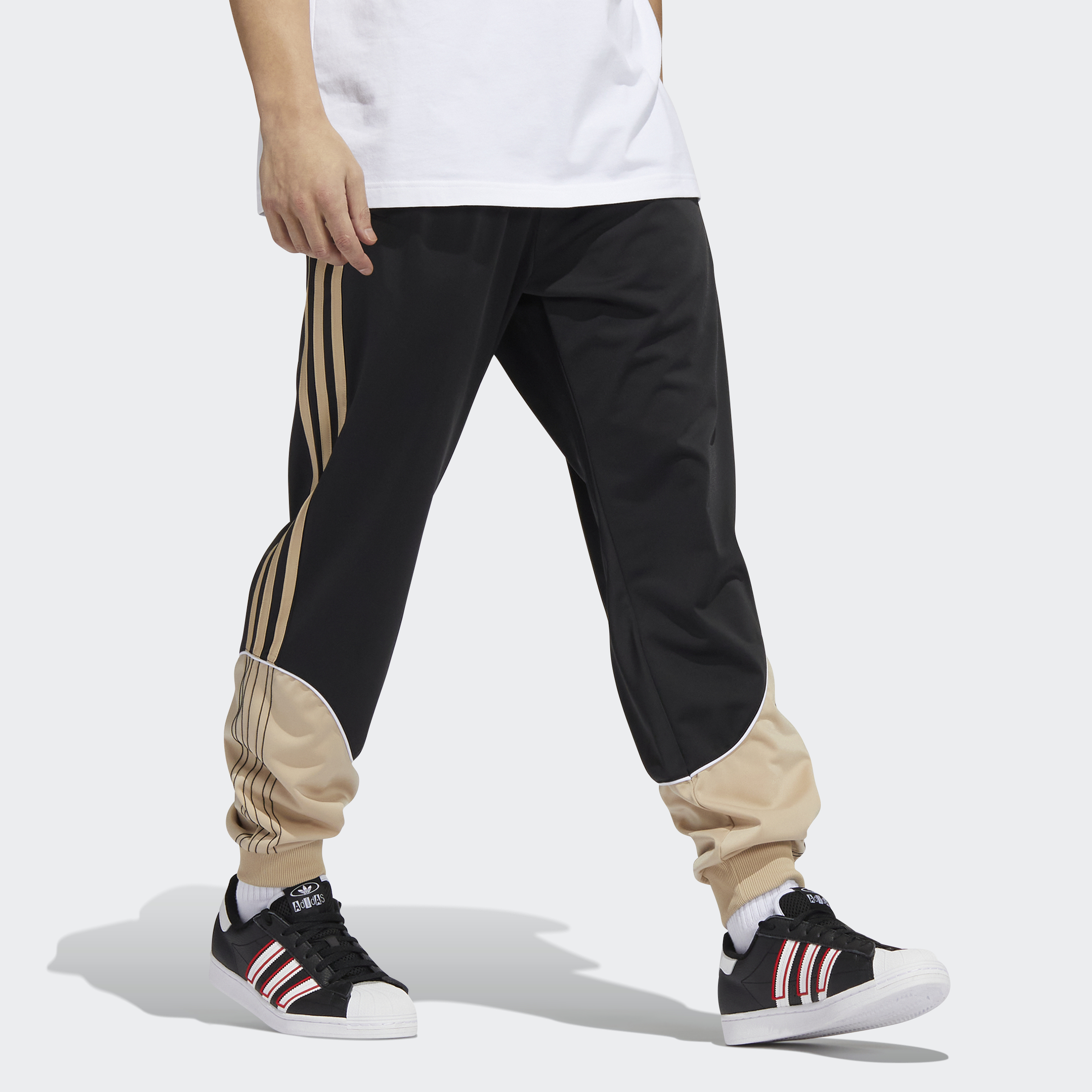 Is there anywhere the iconic adidas SST track suit hasn't been seen? In film, on the court, just on the daily — it's a cultural legend steeped in history. Many iterations have been done over the decades, but these track pants twist the style with pops of colour and new cut lines. The 3-Stripes still flash down the sides, of course. Made with 100% recycled materials, this product represents just one of our solutions to help end plastic waste.