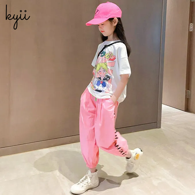 KYII Girls set two-piece Short Sleeve top children Set ky22273