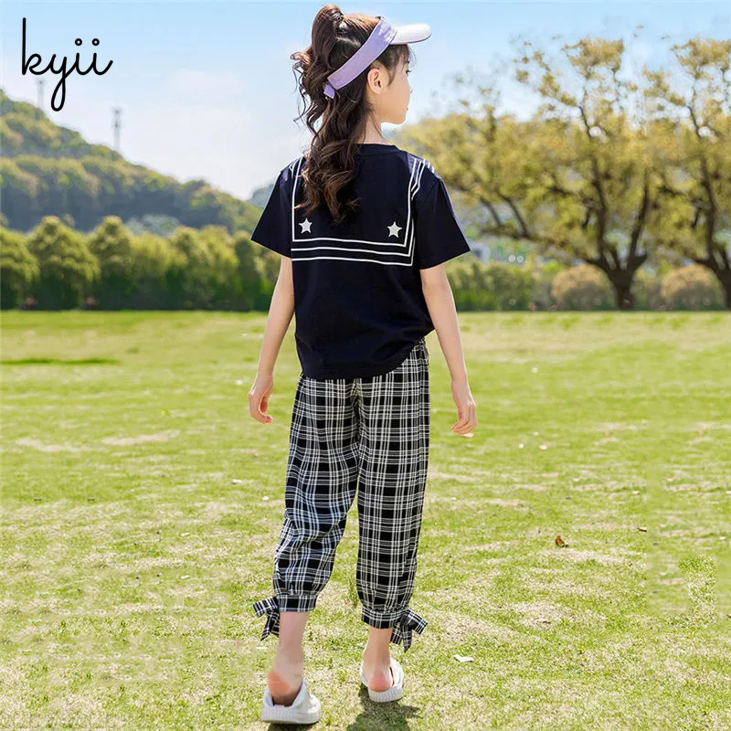KYII Girls set two-piece Short Sleeve top children Set ky22272