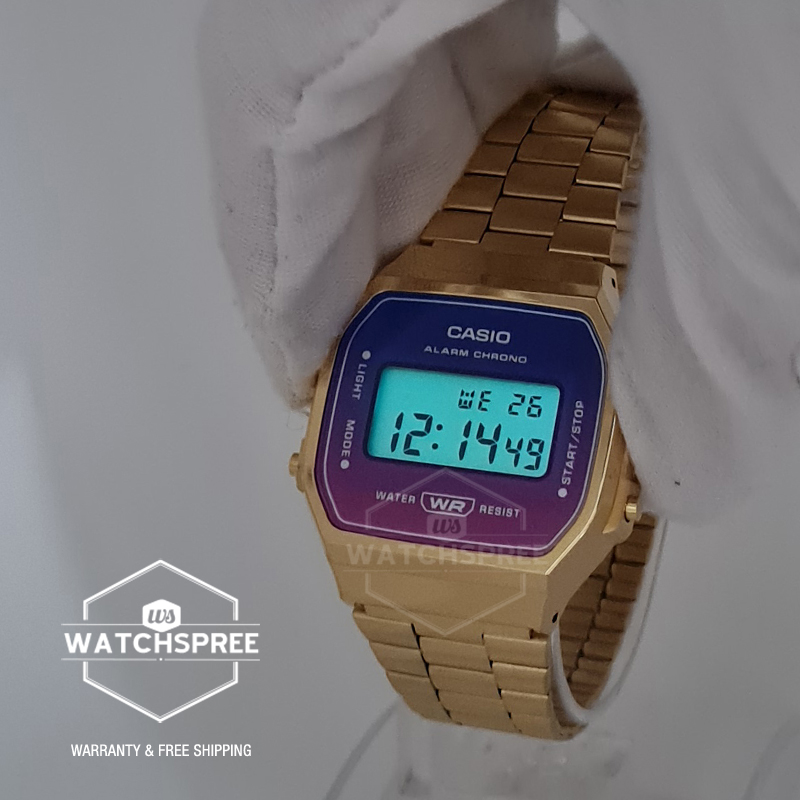 [Watchspree] Casio Vintage Style Digital Gold Ion Plated Stainless Steel Band Watch A168WERG-2A