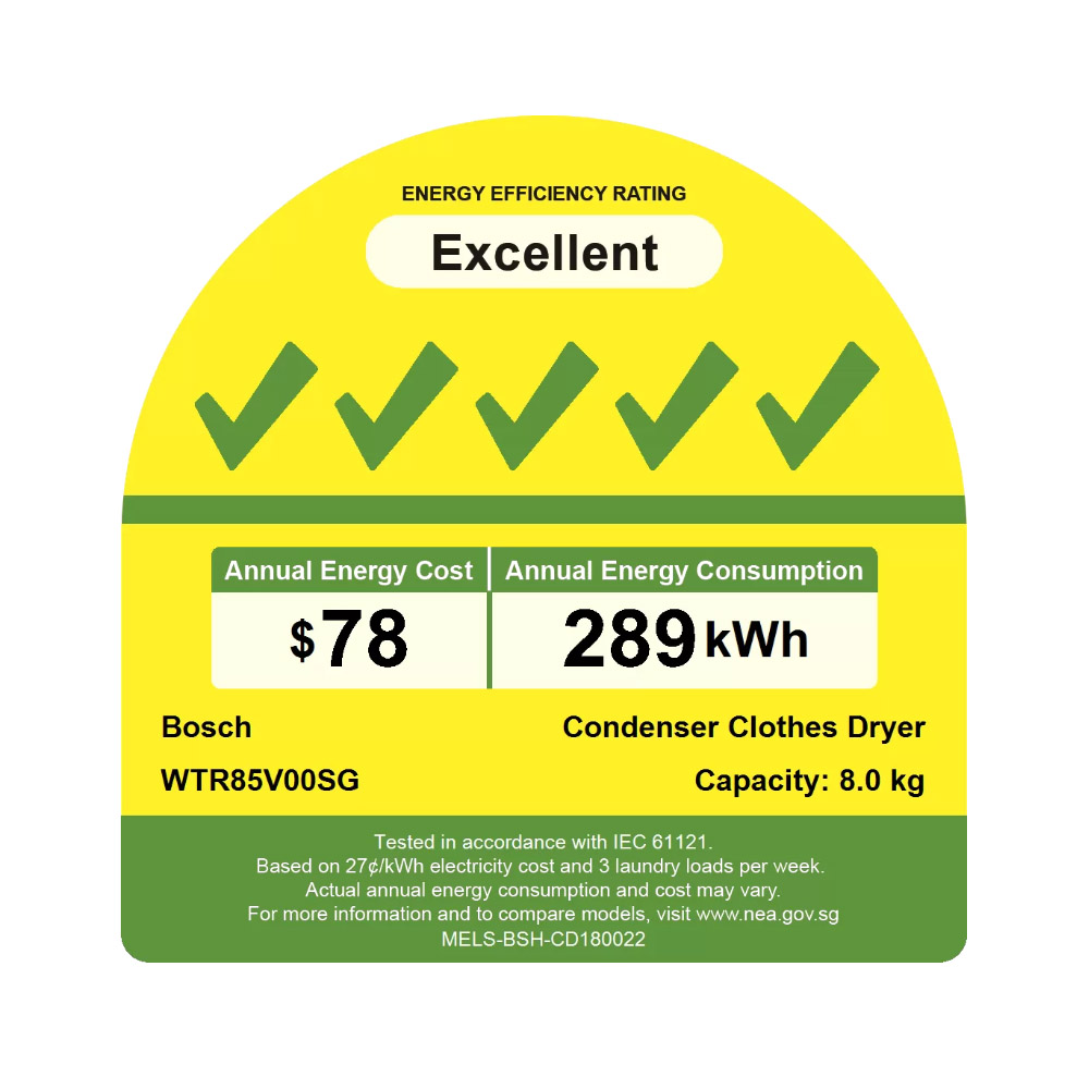 (Bulky) Bosch WTR85V00SG Series 4 Heat Pump Tumble Dryer (8KG)(Energy Efficiency 5 Ticks)