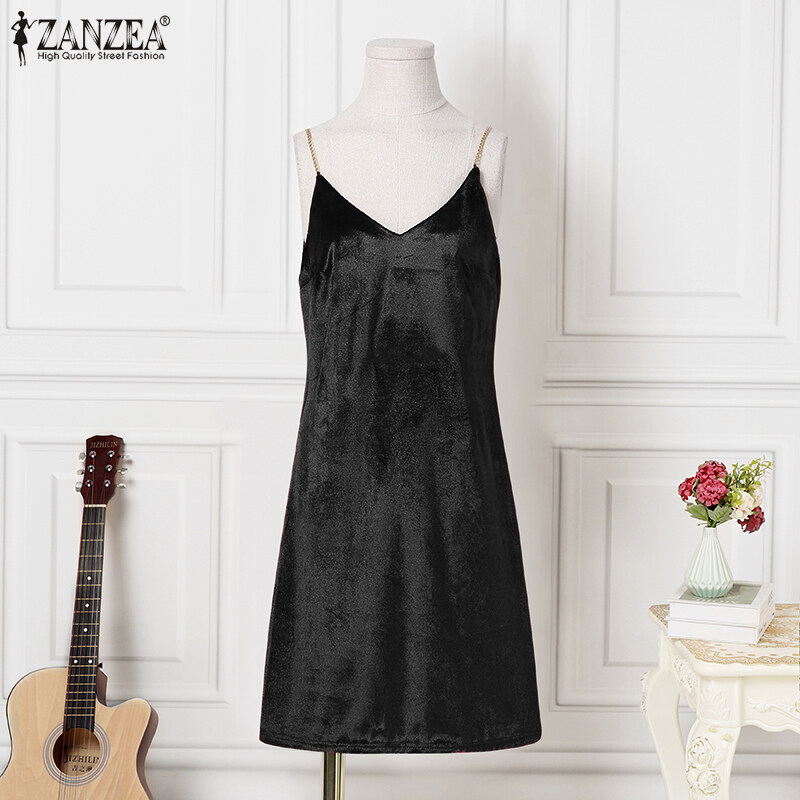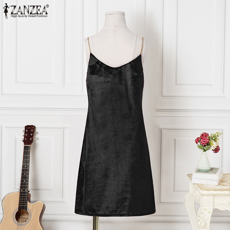 [Clearance Sale]ZANZEA Women's Sleeveless Partywear Dress V Neck Plain Cocktail Mini Dresses #14 CLE
