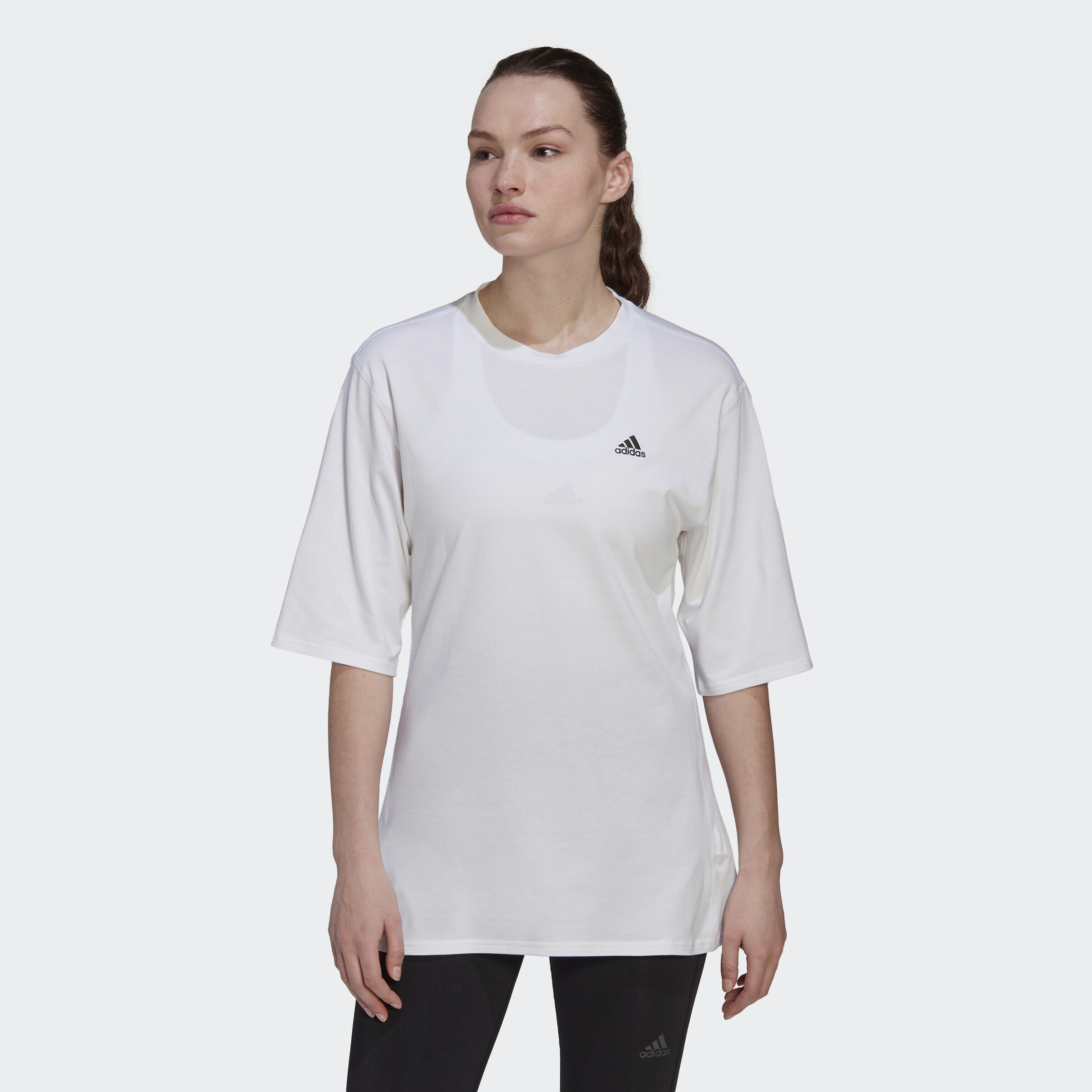 Getting out there for a run recharges your day. Pull on this adidas running tee and seize the moment. Organic cotton feels soft against your skin, and drop shoulders let you move freely. The longer length gives you a little extra coverage and pairs perfectly with tights. This  running tee is made with natural and renewable materials as part of our journey to design out finite resources and help end plastic waste.