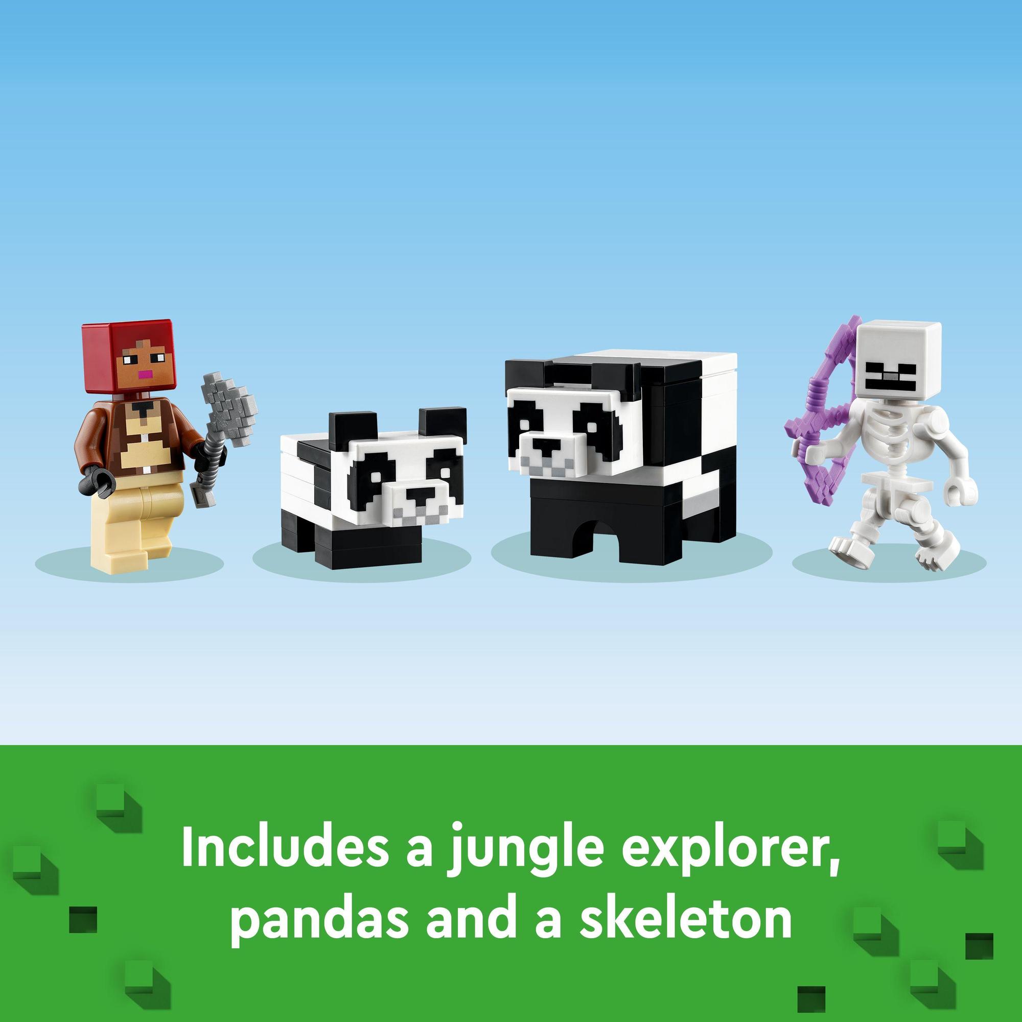 This versatile playset is packed with authentic accessories and figures – including a jungle explorer, panda, baby panda and a skeleton – to inspire endless Minecraft® adventures.