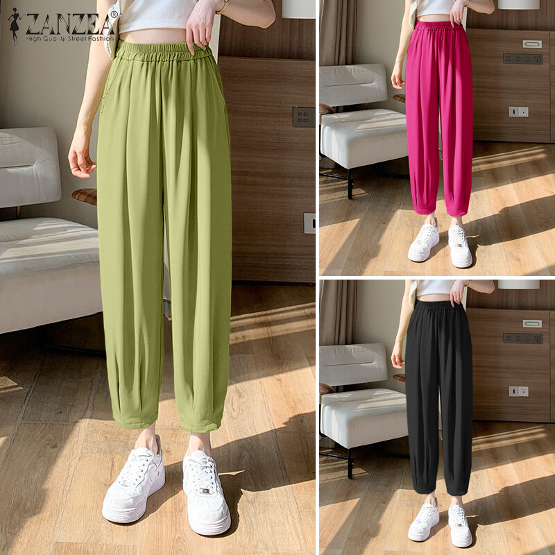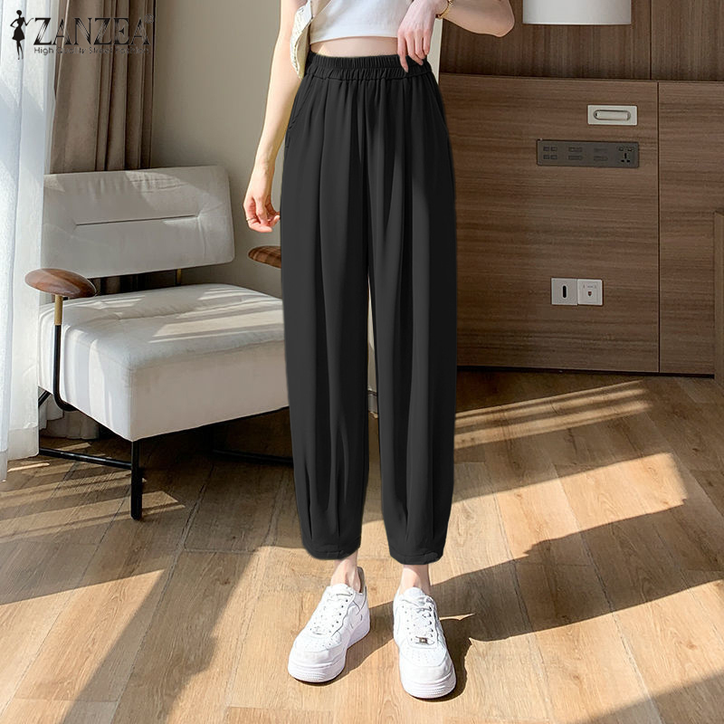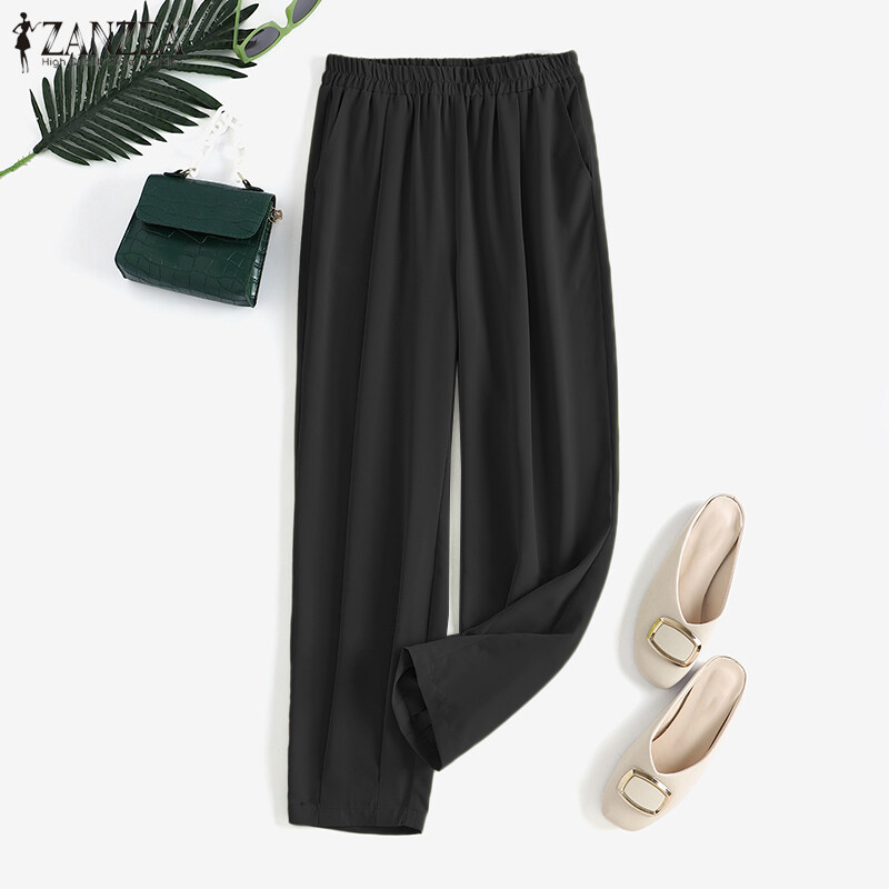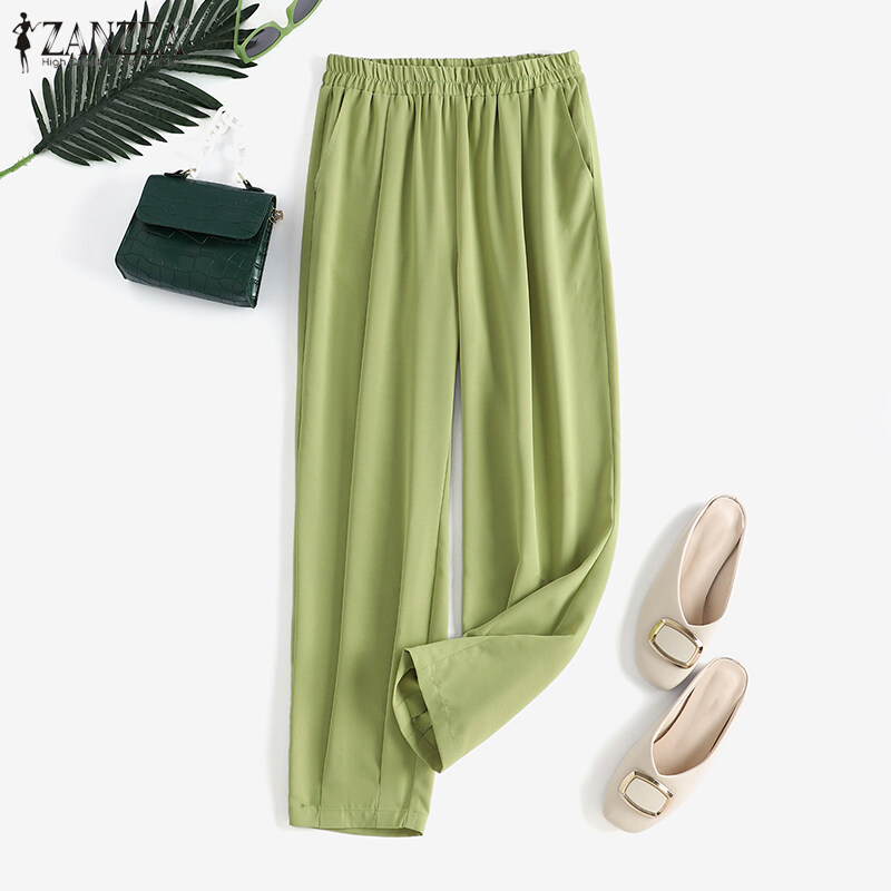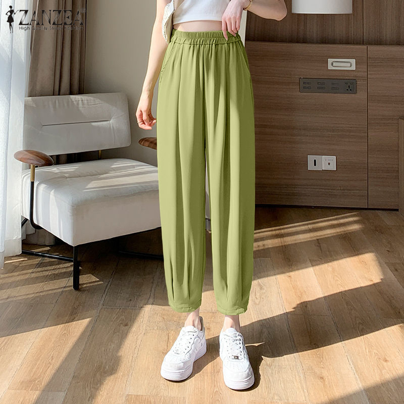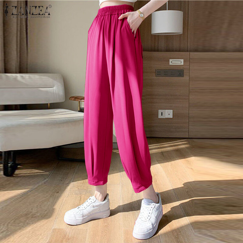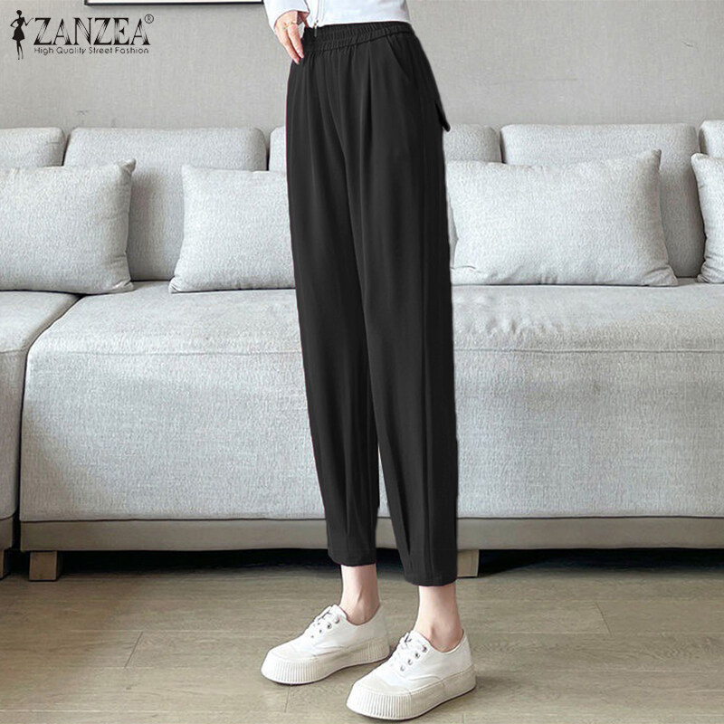 ZANZEA Women Casual Loose Elastic Waist Chino Pants Ladies Formal Harem Trousers #8