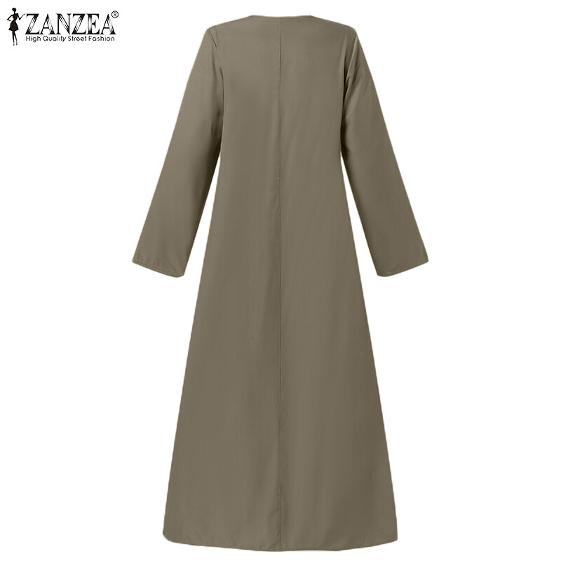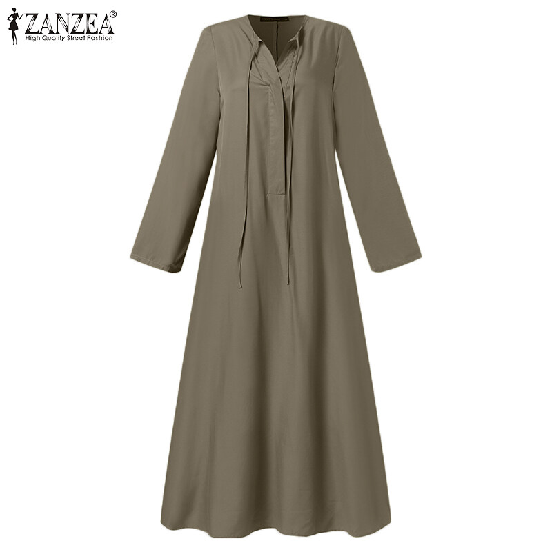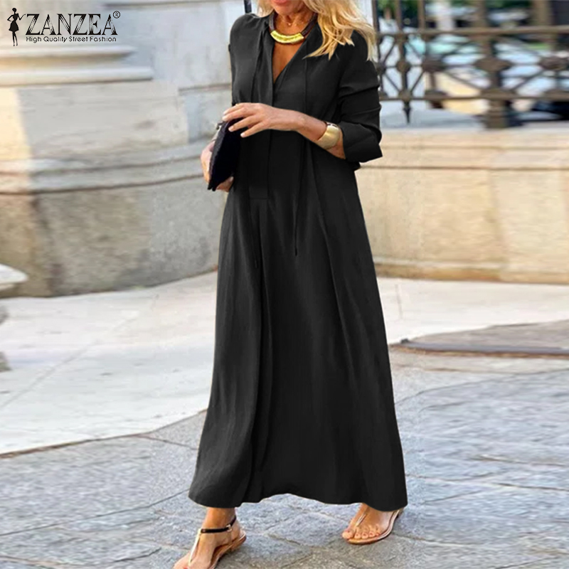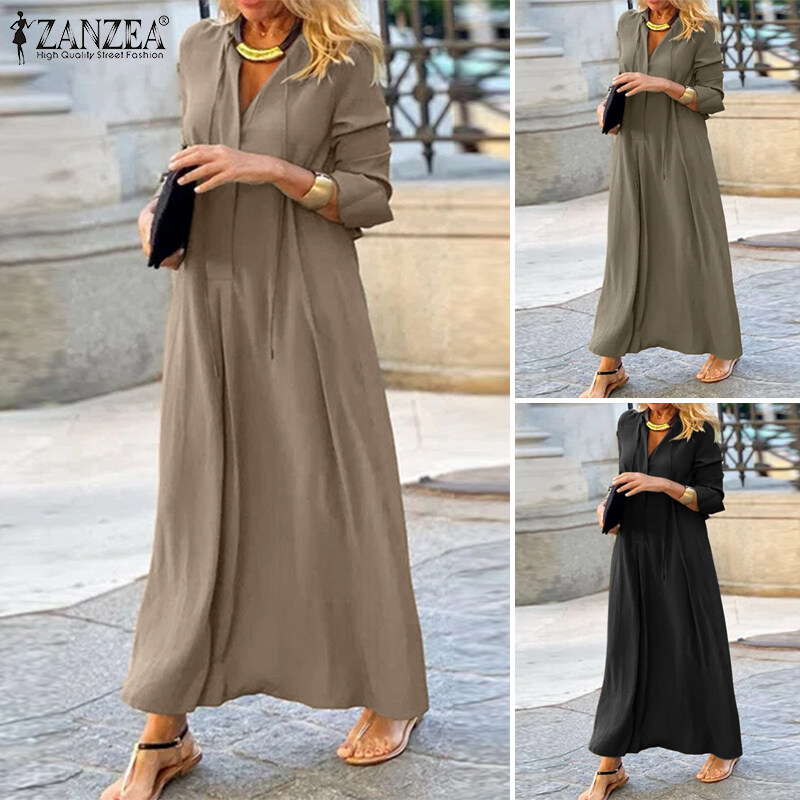 ZANZEA Womens Long Sleeve V Neck Plain Casual Holiday Prom Night Gown Swing Maxi Dress #15