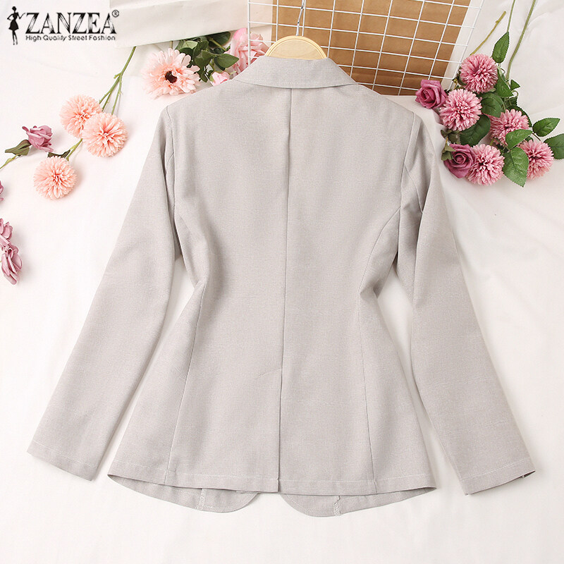 ZANZEA Women Versatile Lapel Long Sleeved Blazer Fashion Fitting Suit Coat Button-Up Outwear #15