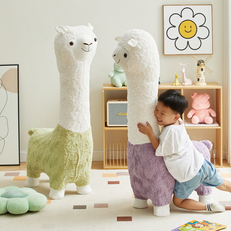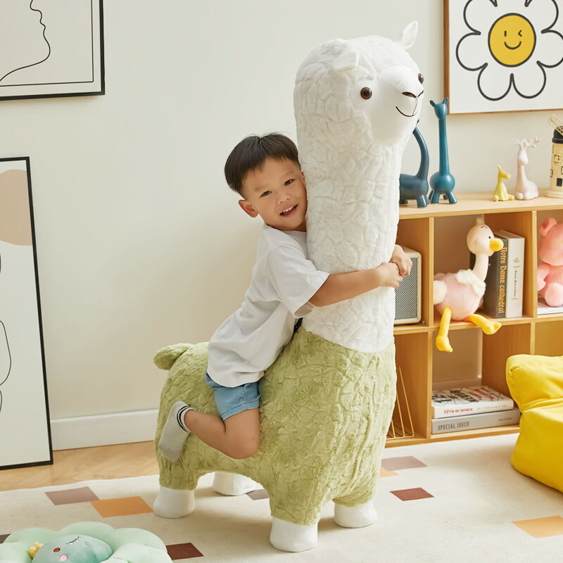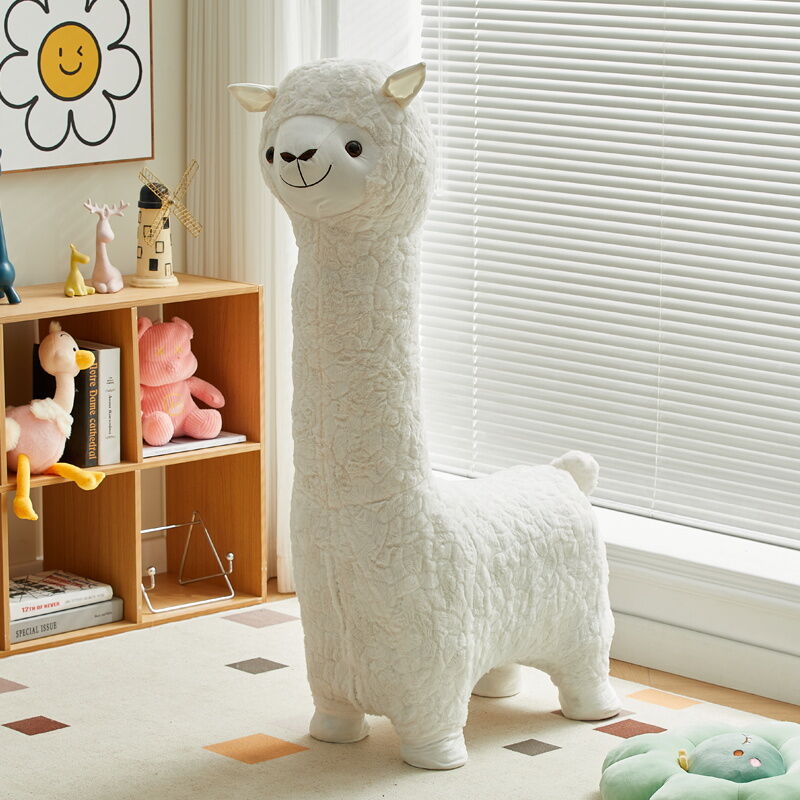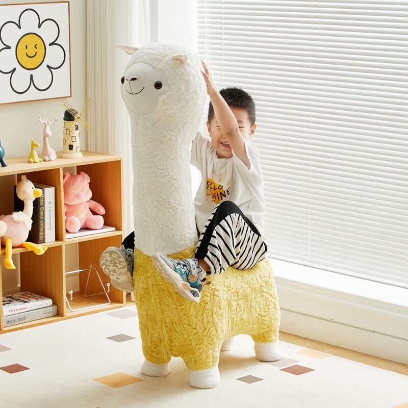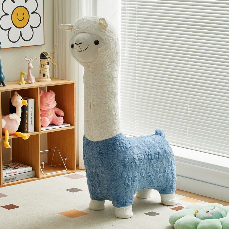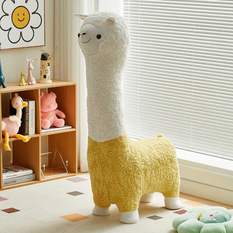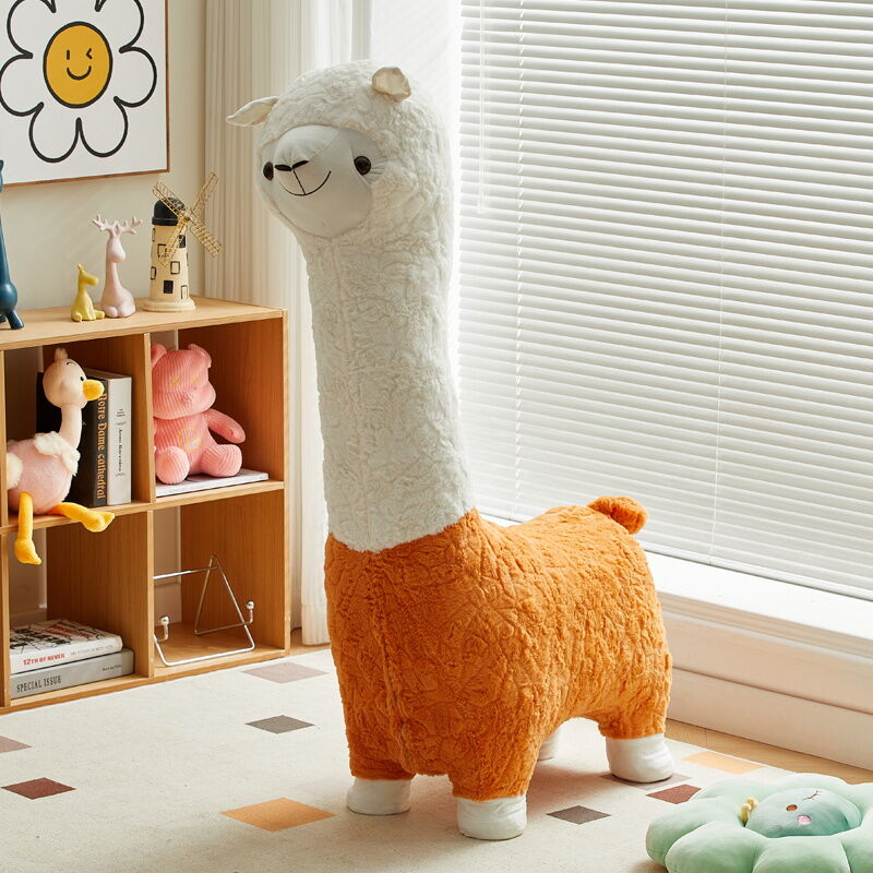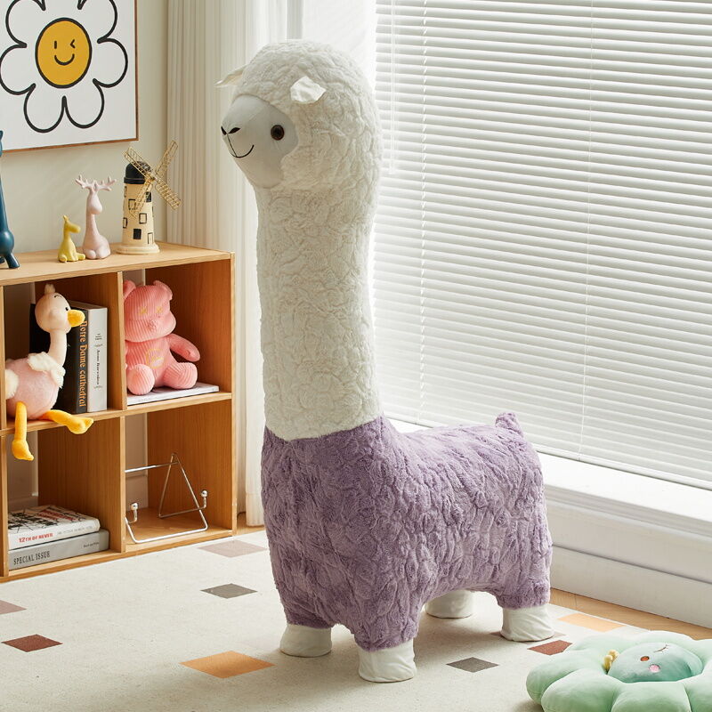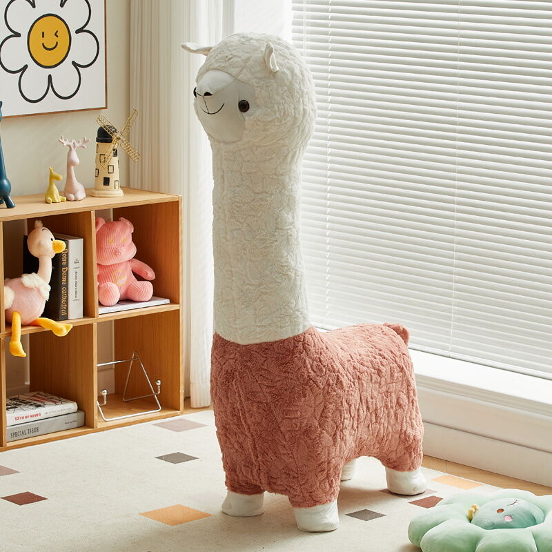 Beiou Home Creative Alpaca Animal Stool Cartoon Plush Shoe Changing Stool Casual Children Sofa Stool Living Room Decoration