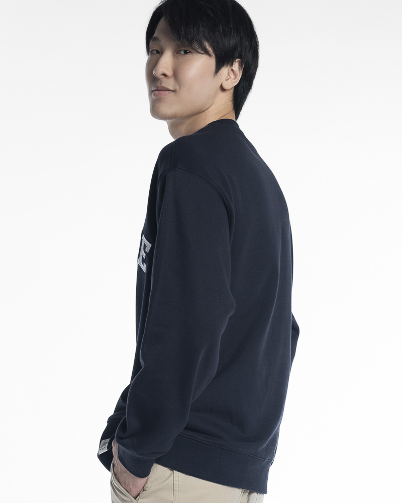 Yishion Men Solid Colour Long Sleeve Sweatshirt with Promote Slogan Embroidery (Dark Blue)