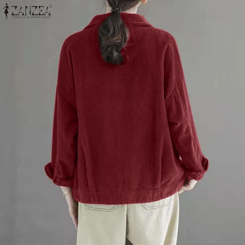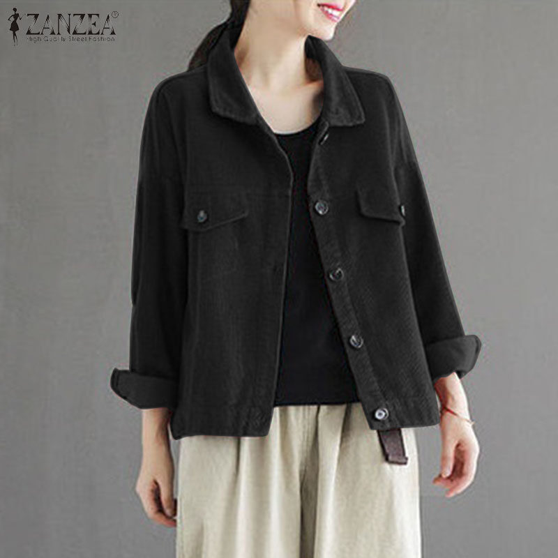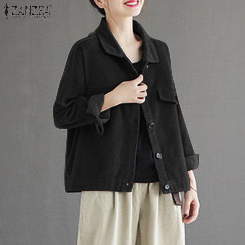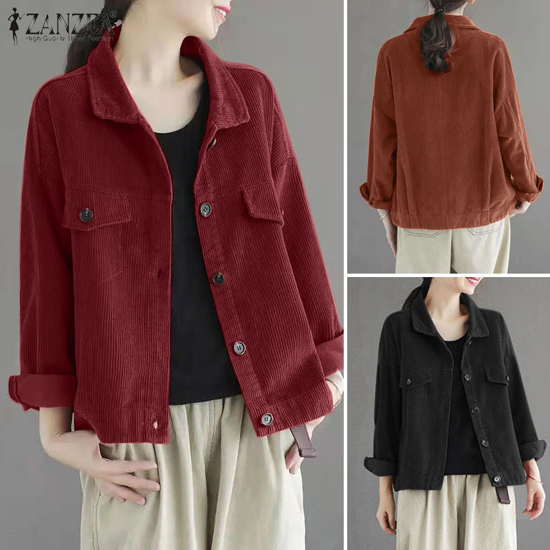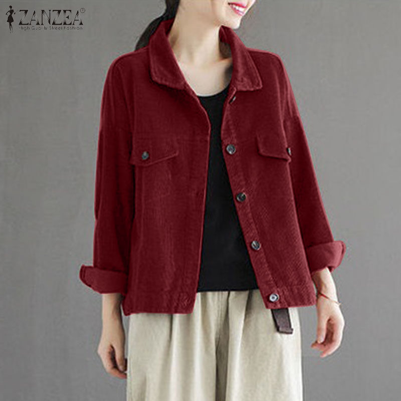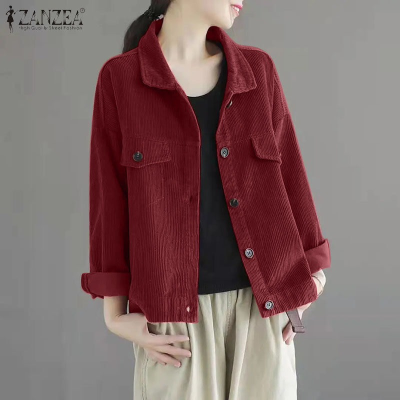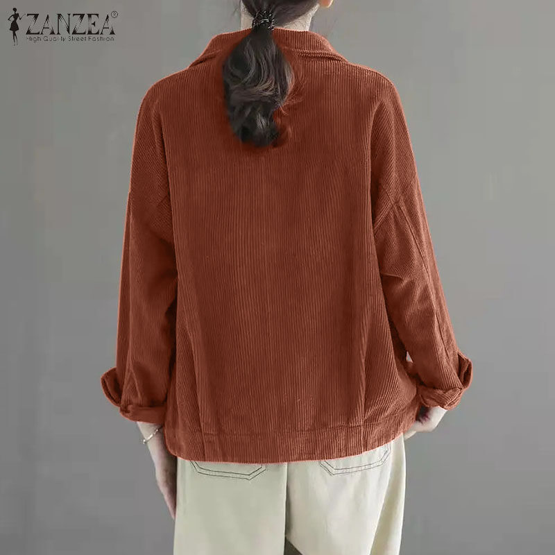 ZANZEA Womens Vintage Corduroy Solid Jackets Versatile Casual Holiday Thremal Overcoat #8