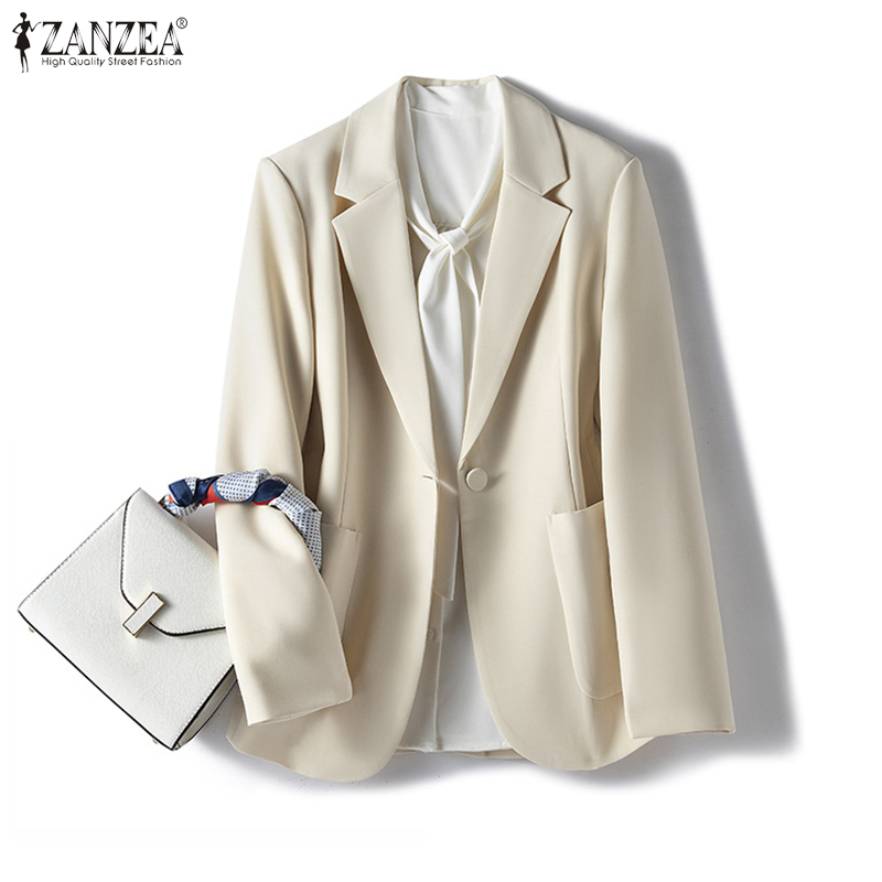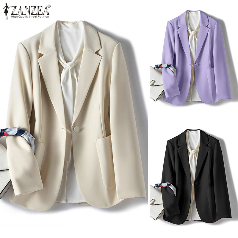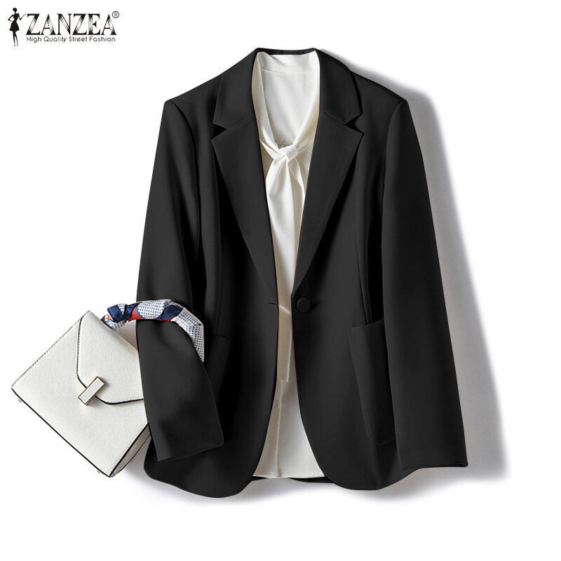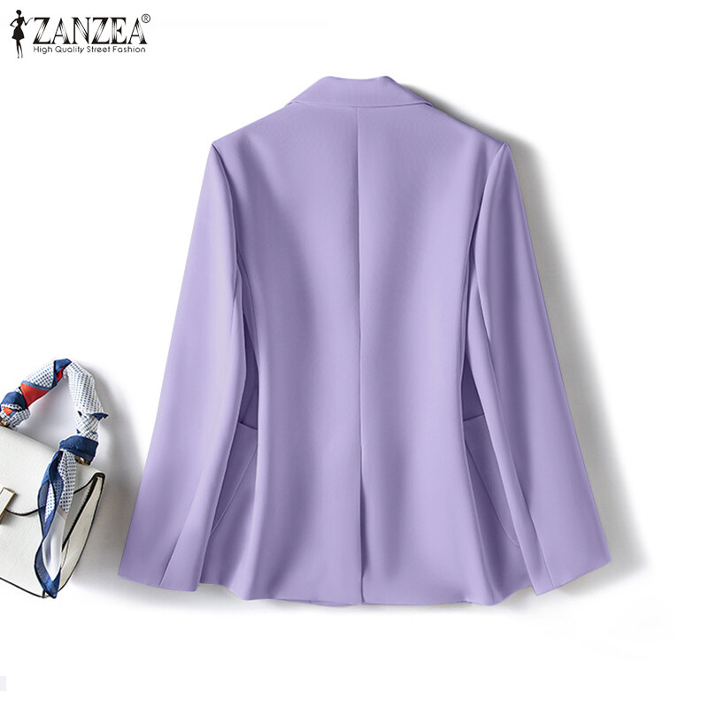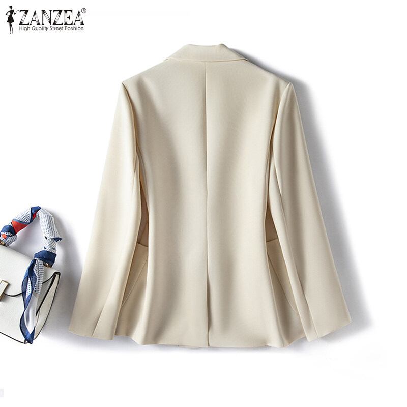 ZANZEA Women Formal Work Office Lapel Collar Long Sleeve Solid Coats Business Leisure Button Up Blazer #2