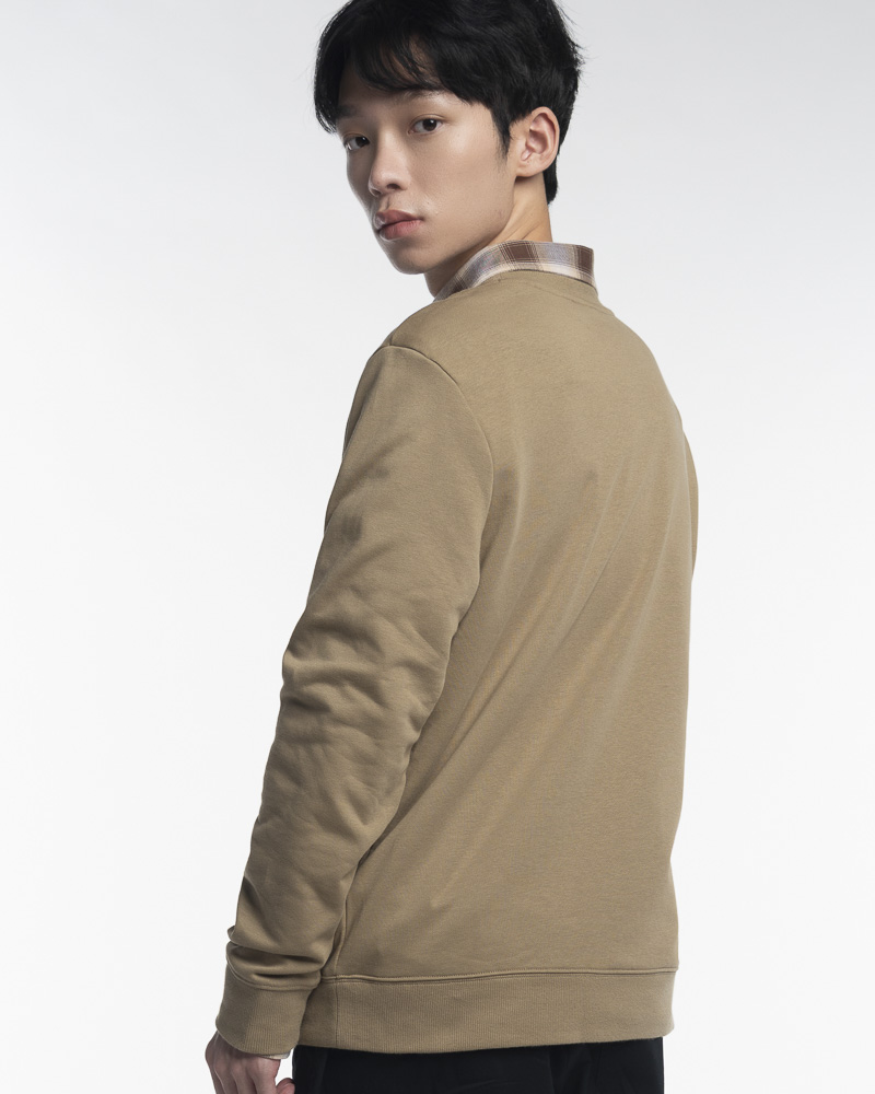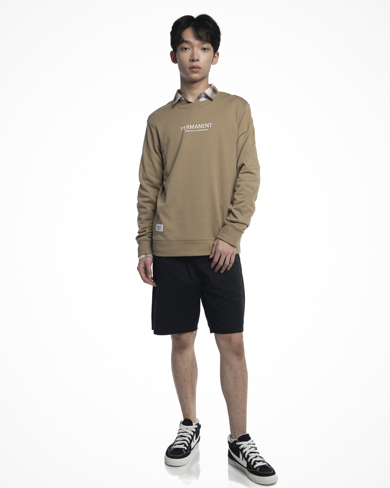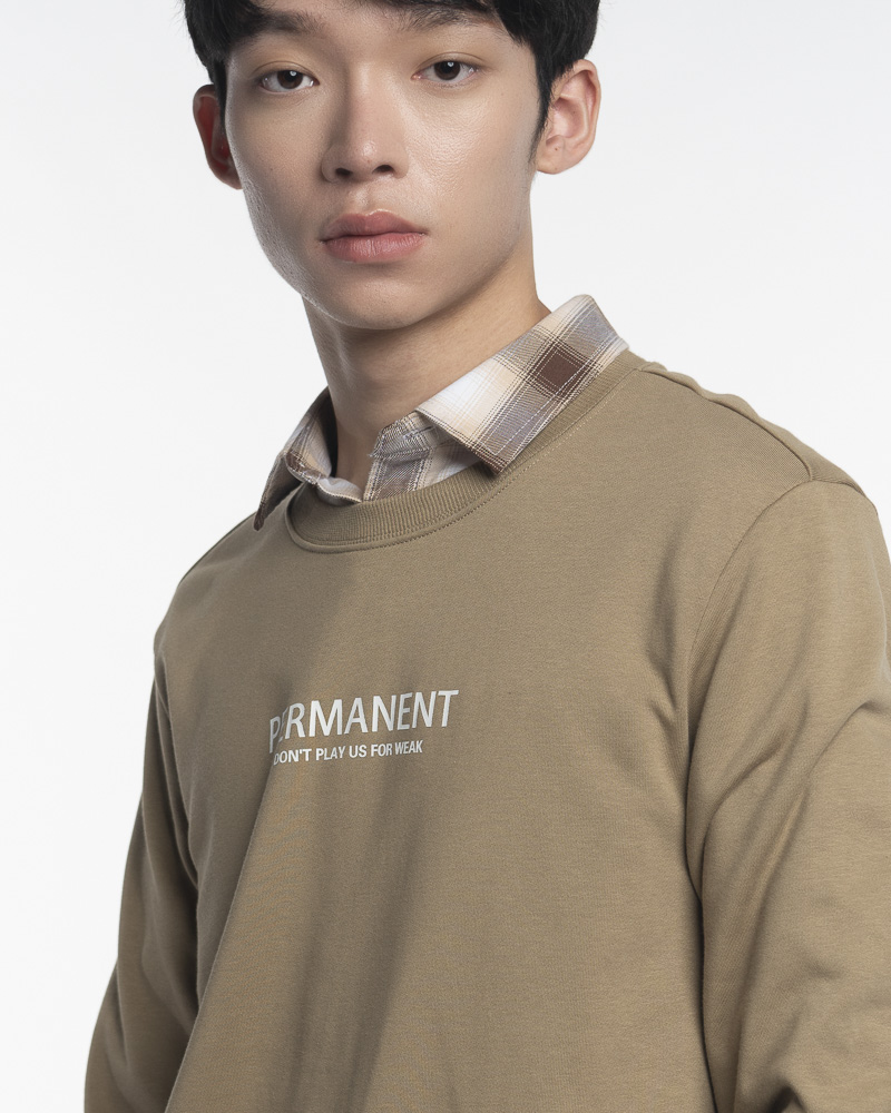 Yishion Men Solid Coloured Long Sleeve Sweatshirt with Permanent Slogan (Khaki Beige)