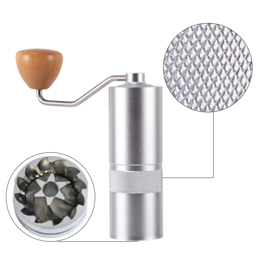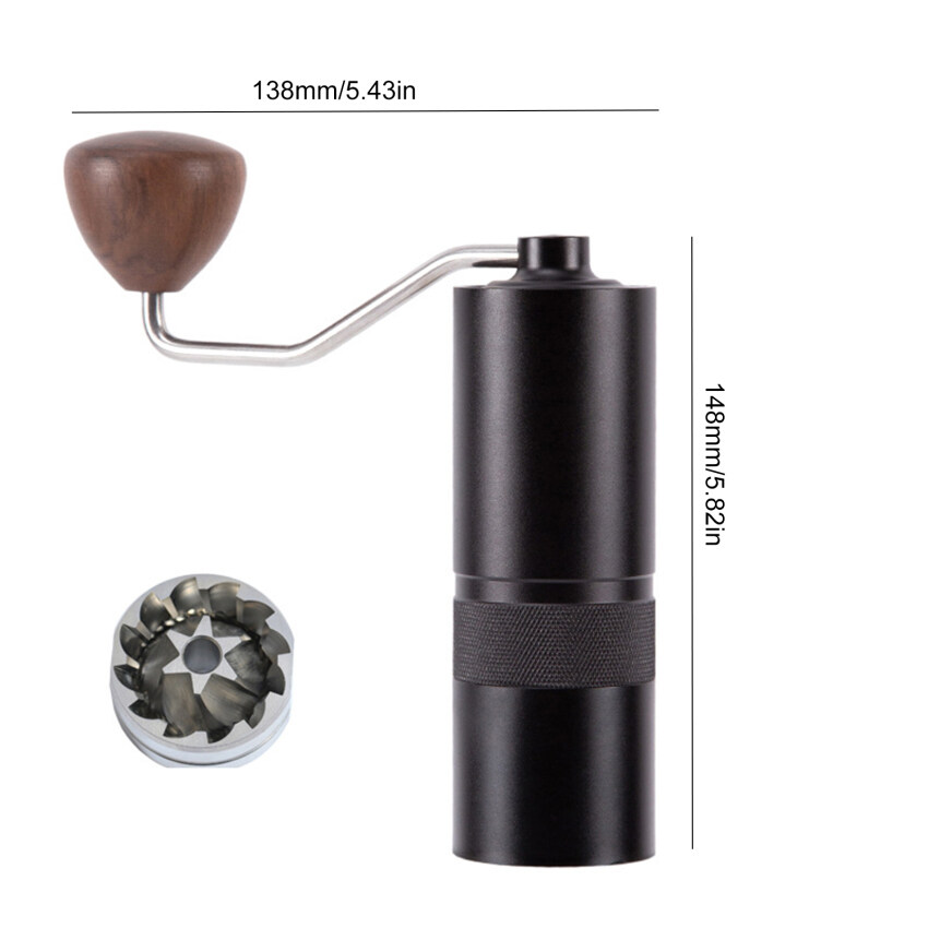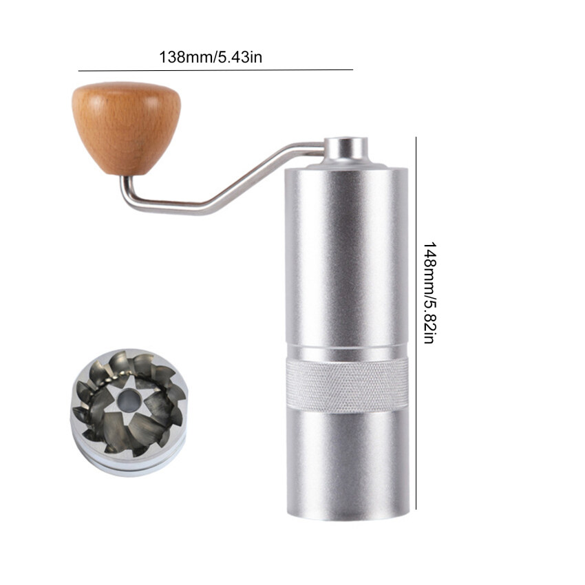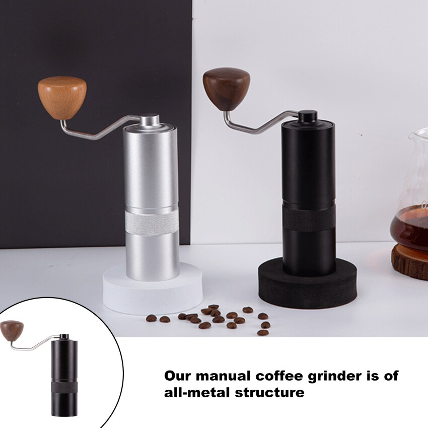 1.Our hand coffee grinder is the all metal construction, with CNC stainless hexagonal steel conical burr, the one-piece double bearing fixing,numerical internal adjustable setting。