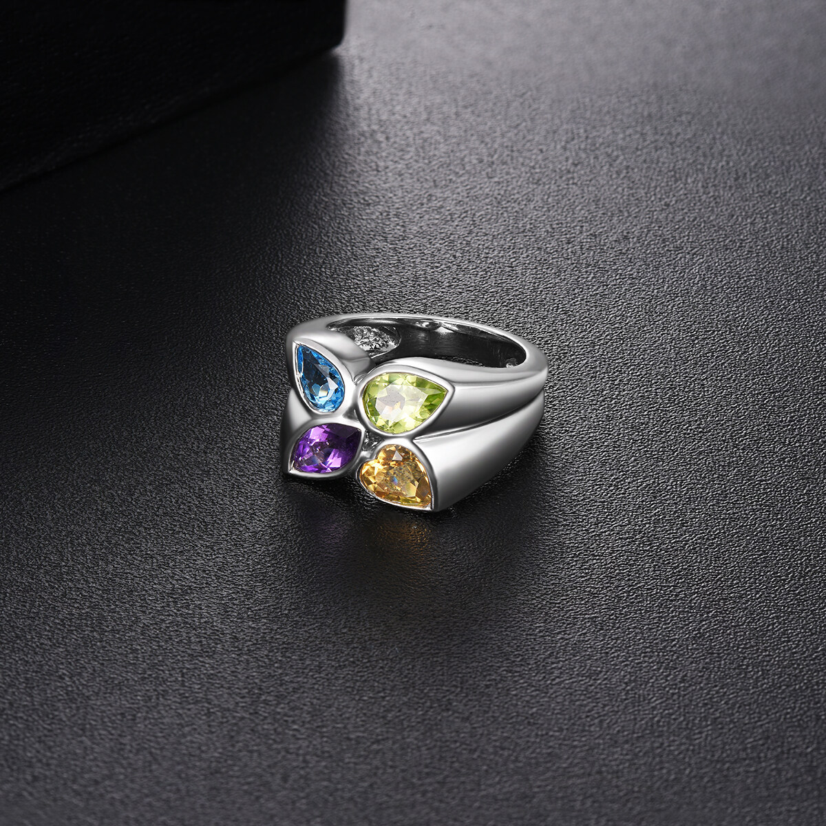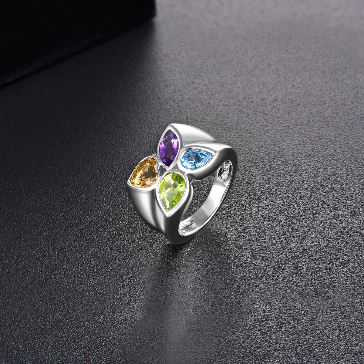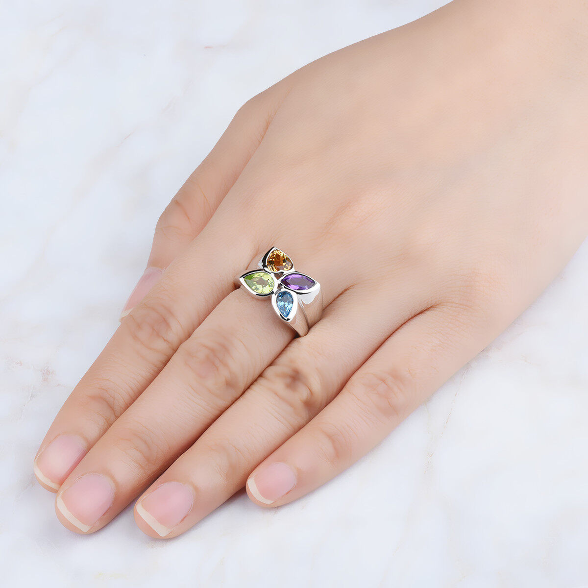 Lohaspie Jewelry 3.2 Carats Silver 925 Original Ring For Women Natural Amethyst Citrine Topaz Ring Colorful Gemstone Topaz Birthstone Ring Jewelry