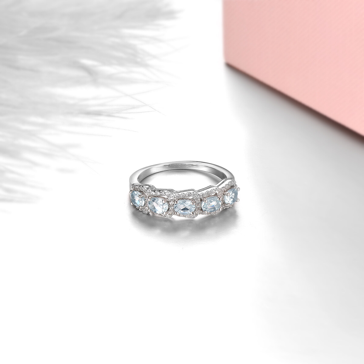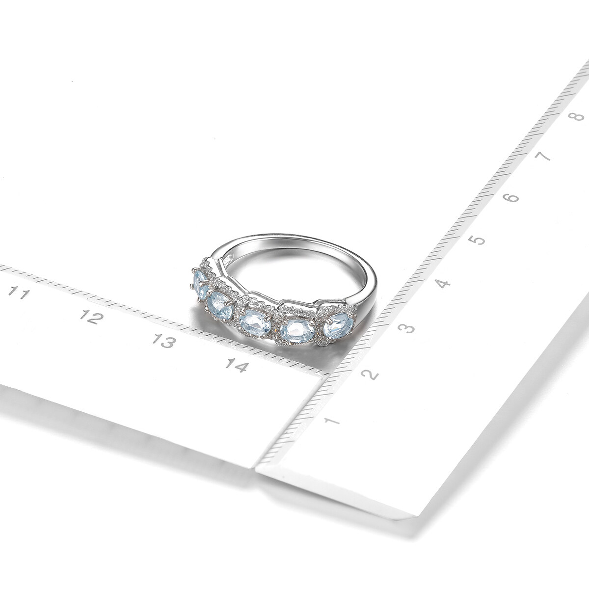 Silver S925 Ring Genuine Natural Aquamarine Multi Gemstone Design Women Top quality Style Jewerly Gifts For New Years