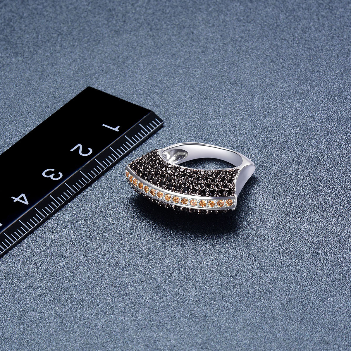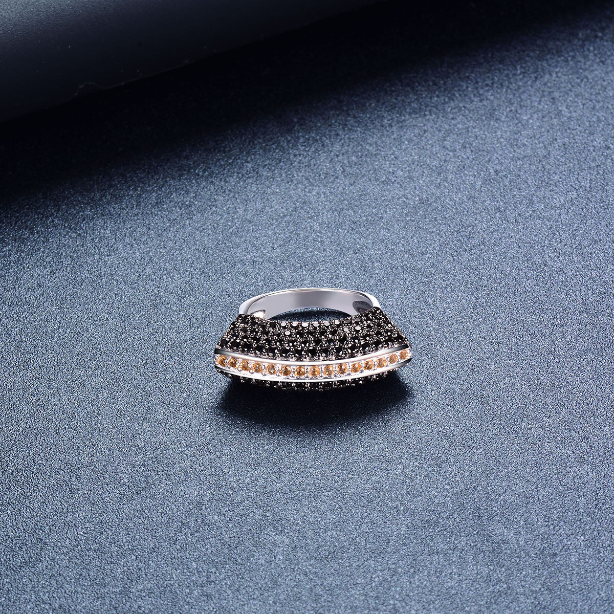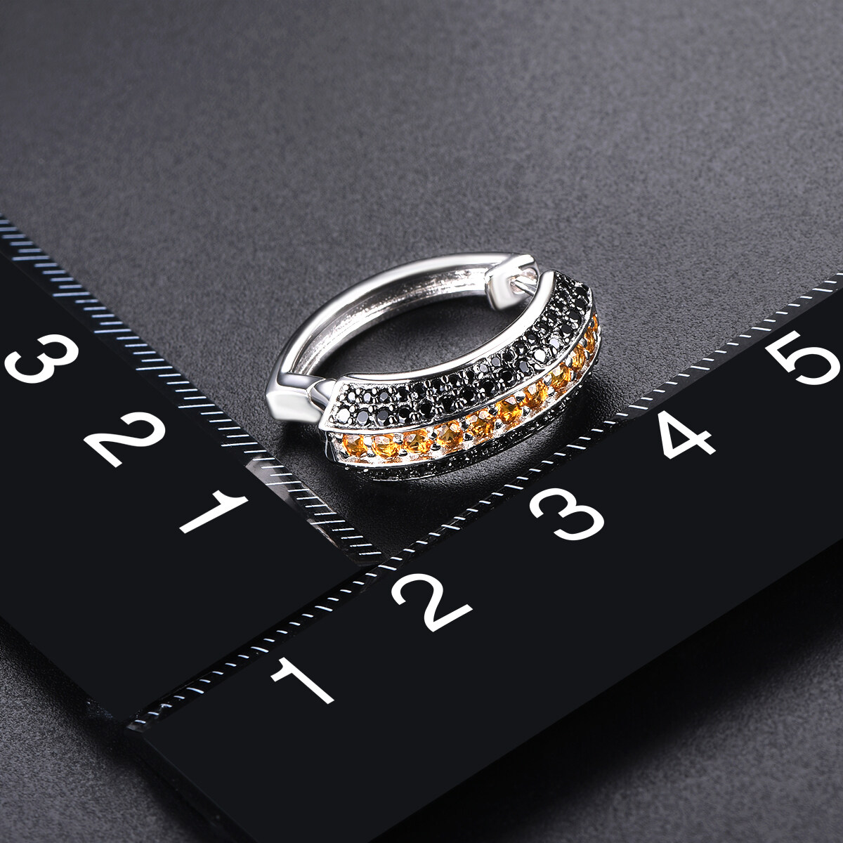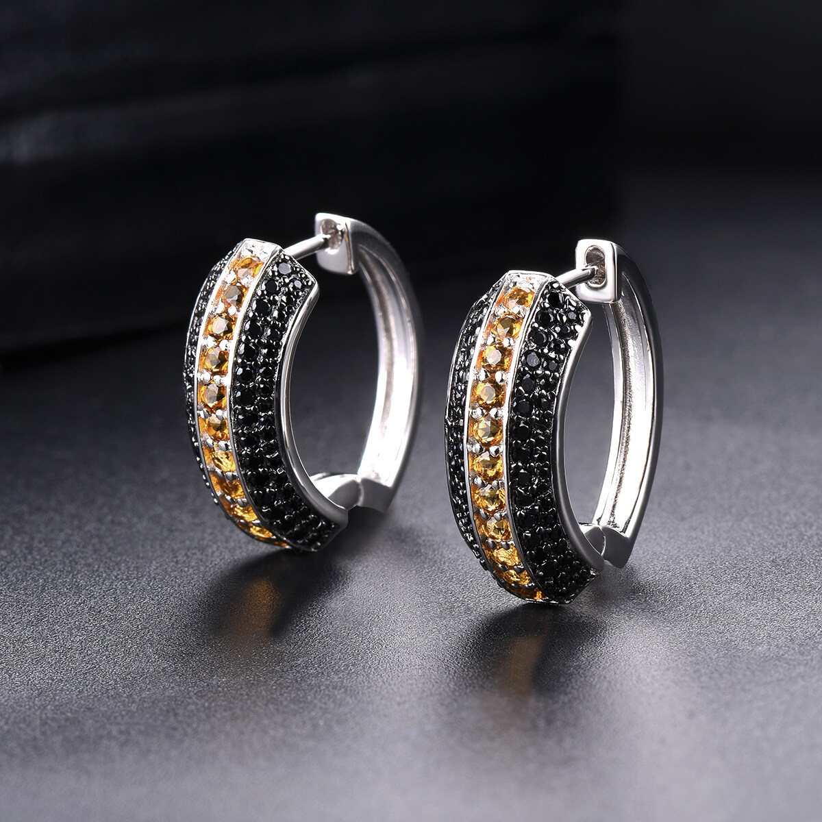 Natural Yellow Citrine Jewelry Sets Real Multi Black Spinel Moon-shaped Ring 925 Silver Original Jewelry Design Fine Jewelry Set for Women Wedding Anniversary Gifts