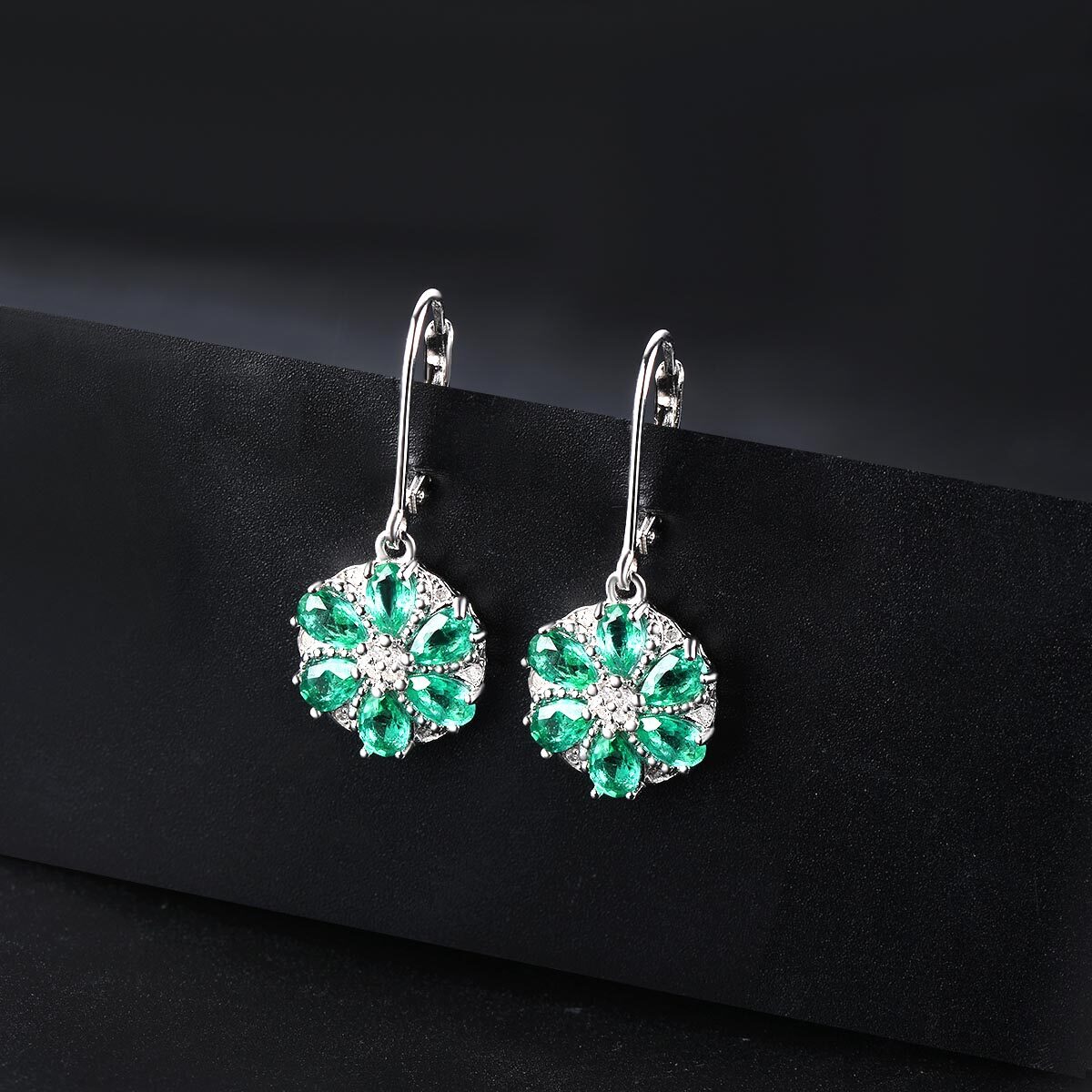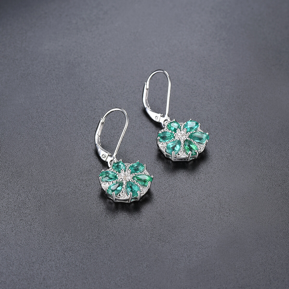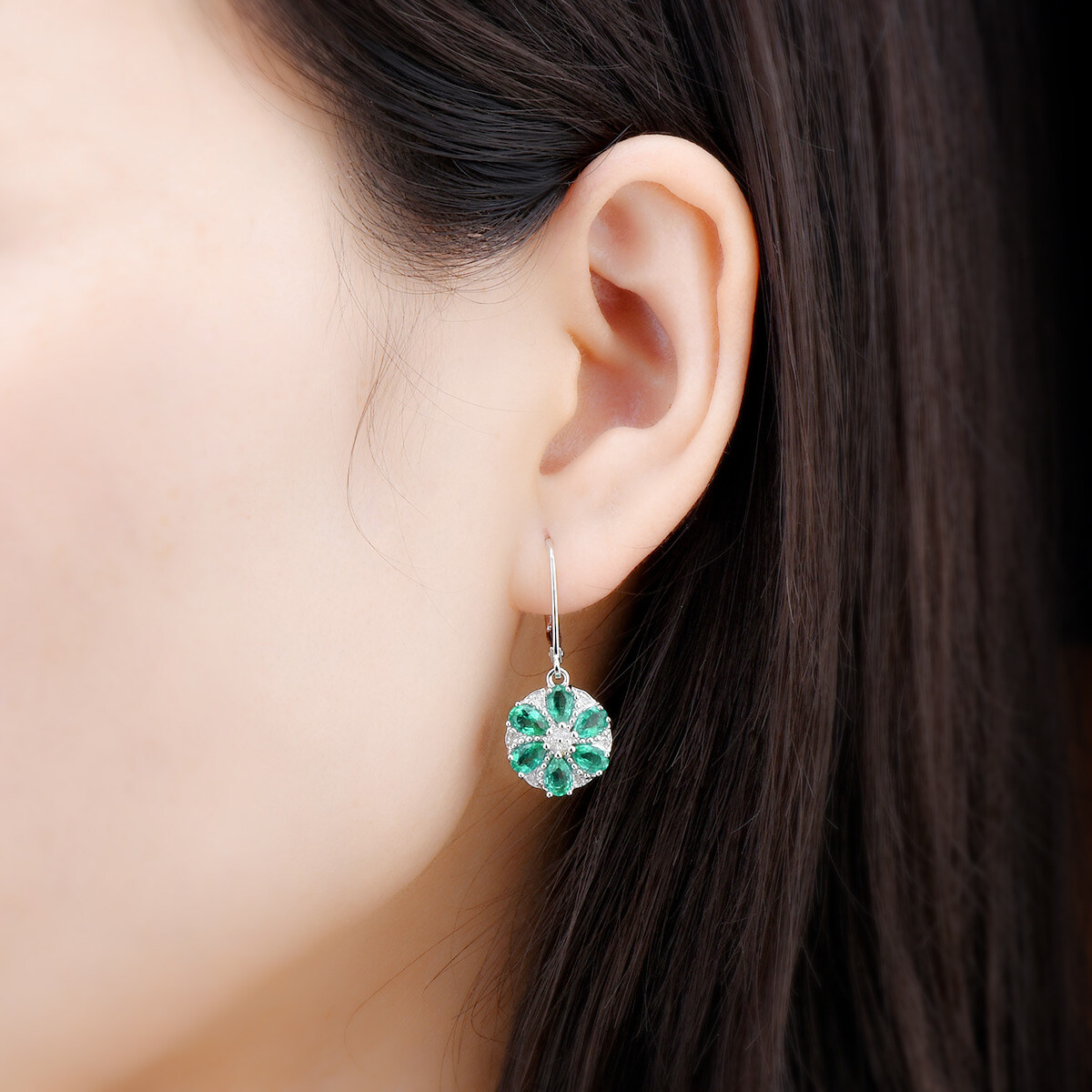 Natural Precious Emerald Silver Drop Earring for Women 2.2 Carat Natural Emerald Classic Wedding Christmas Gift