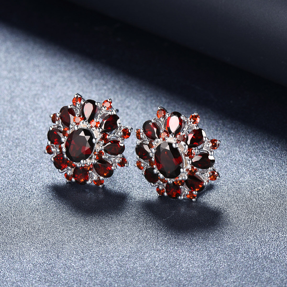 Flower Stud Earrings for Women Gift Black Garnet Silver Natural Gemstone 925 Sterling Silver Classic Elegant
