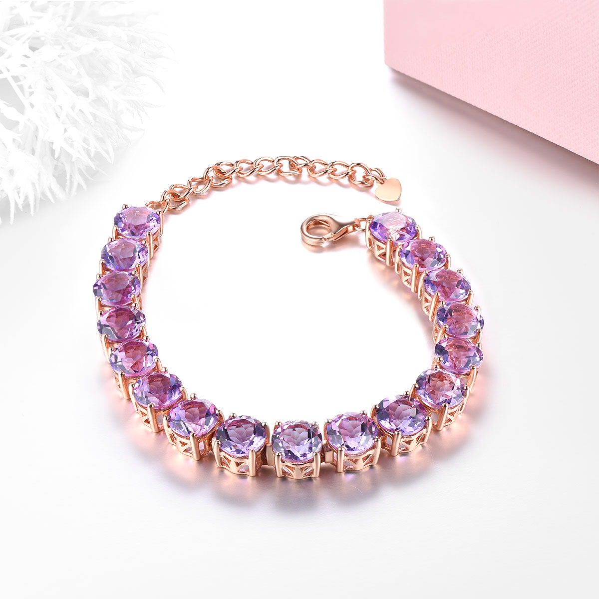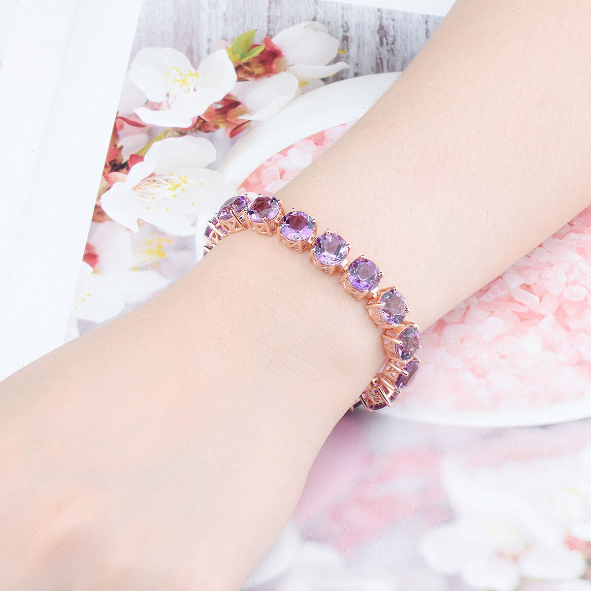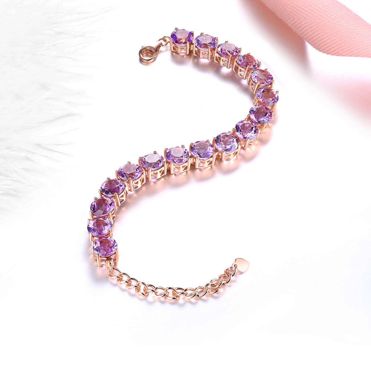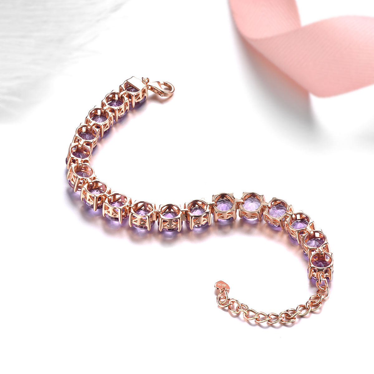 Natural Amethyst Bracelet Rose Gold Plated Bracelet Silver 925 Original Design Bracelet Precious Jewelry Bracelet Christmas Gifts for Woman